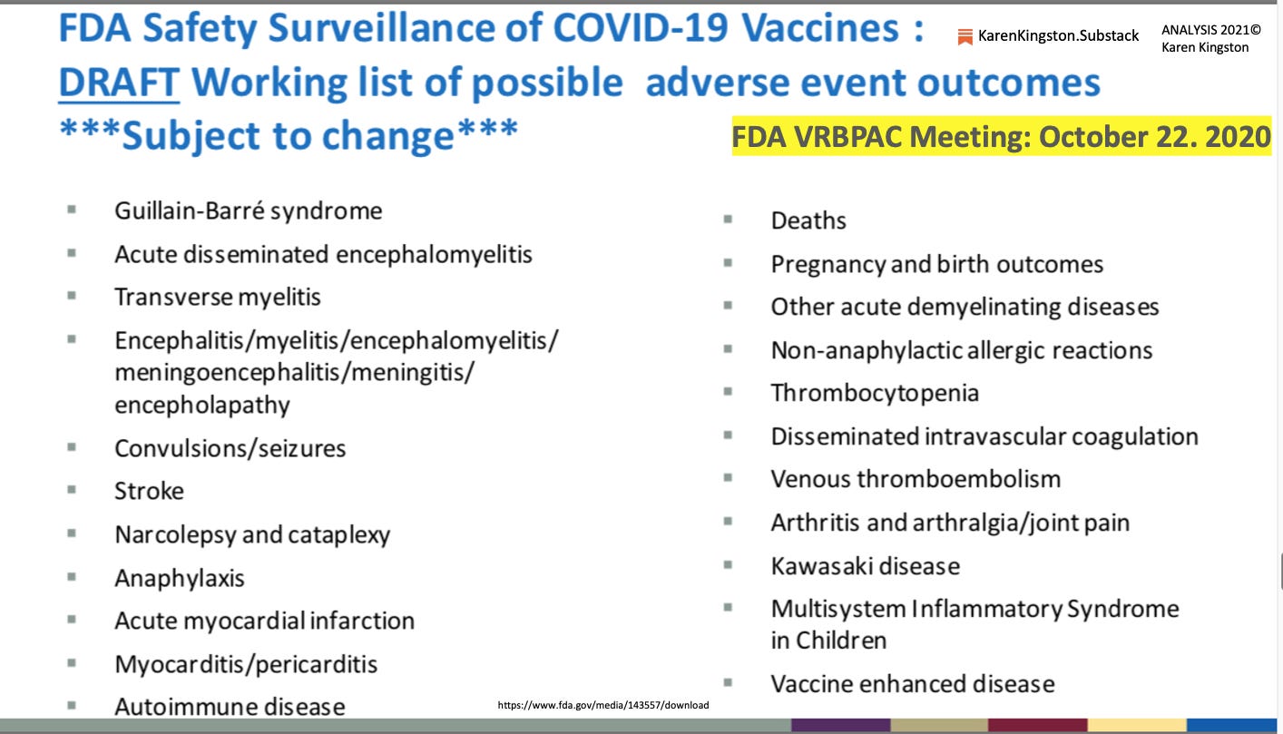 The FDA met with the manufacturers and reviewed this ‘working list’ of harmful clinical outcomes caused by the injections;