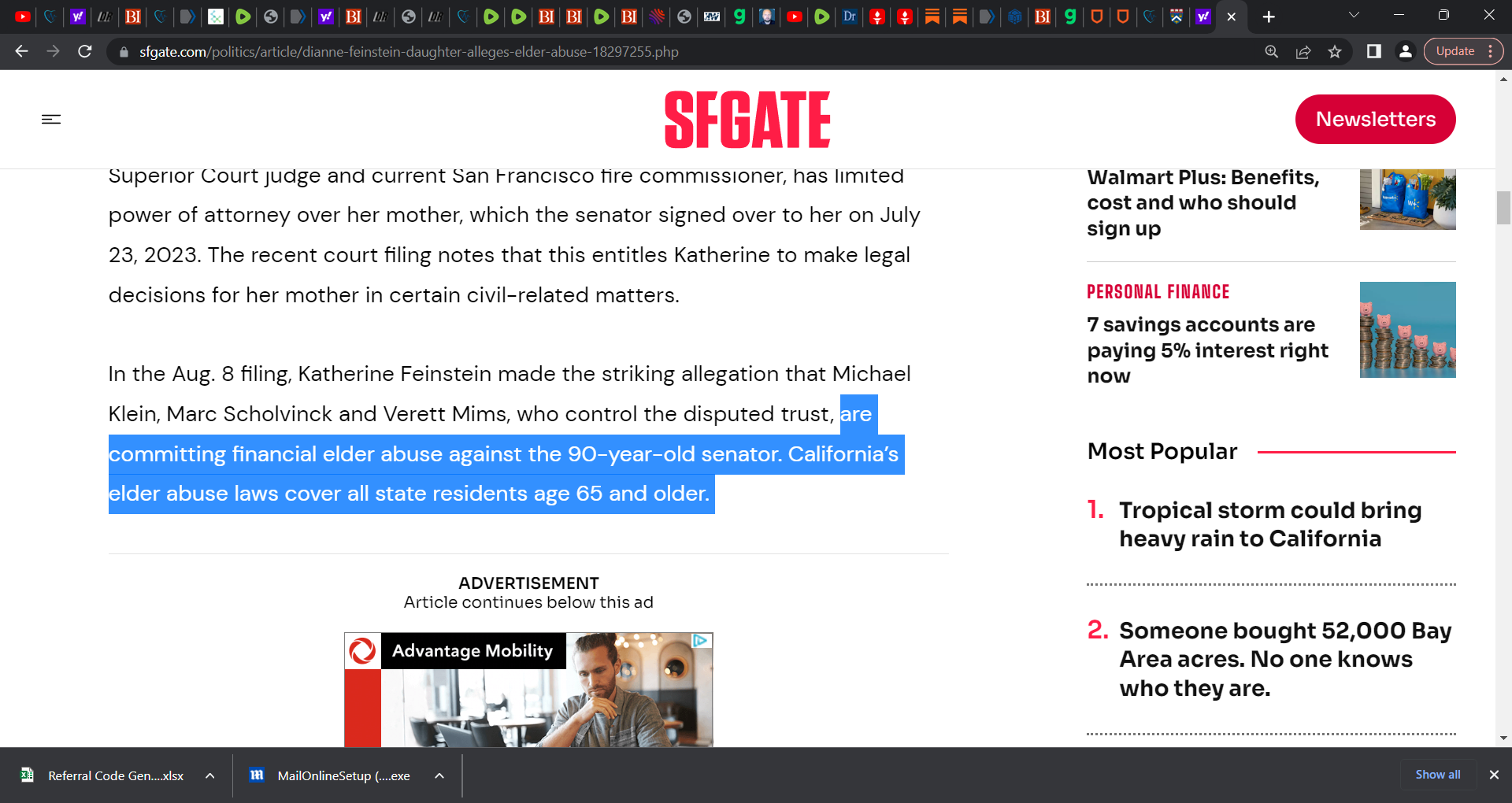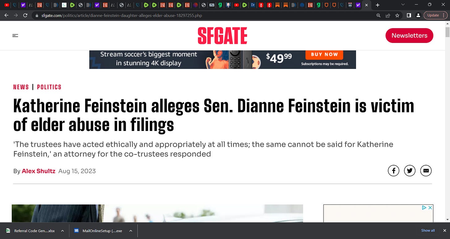 'Katherine Feinstein alleges Sen. Dianne Feinstein is victim of elder abuse in filings'; I thought on seeing headline that this was physical or emotional abuse that is sinful & criminal to elderly;