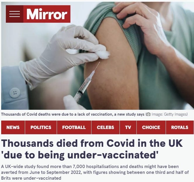 The Mirror told us that 7,000 hospitalisations and deaths may have been averted if only there had been more vaccinations.
