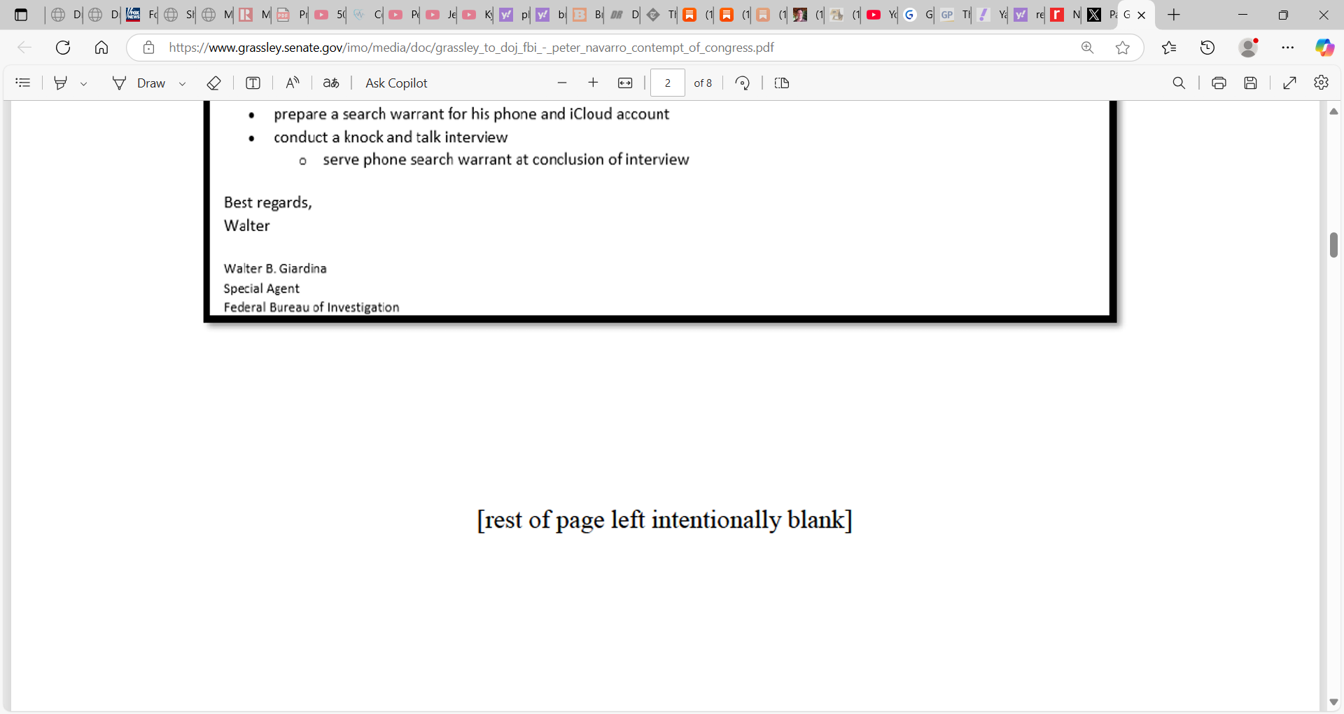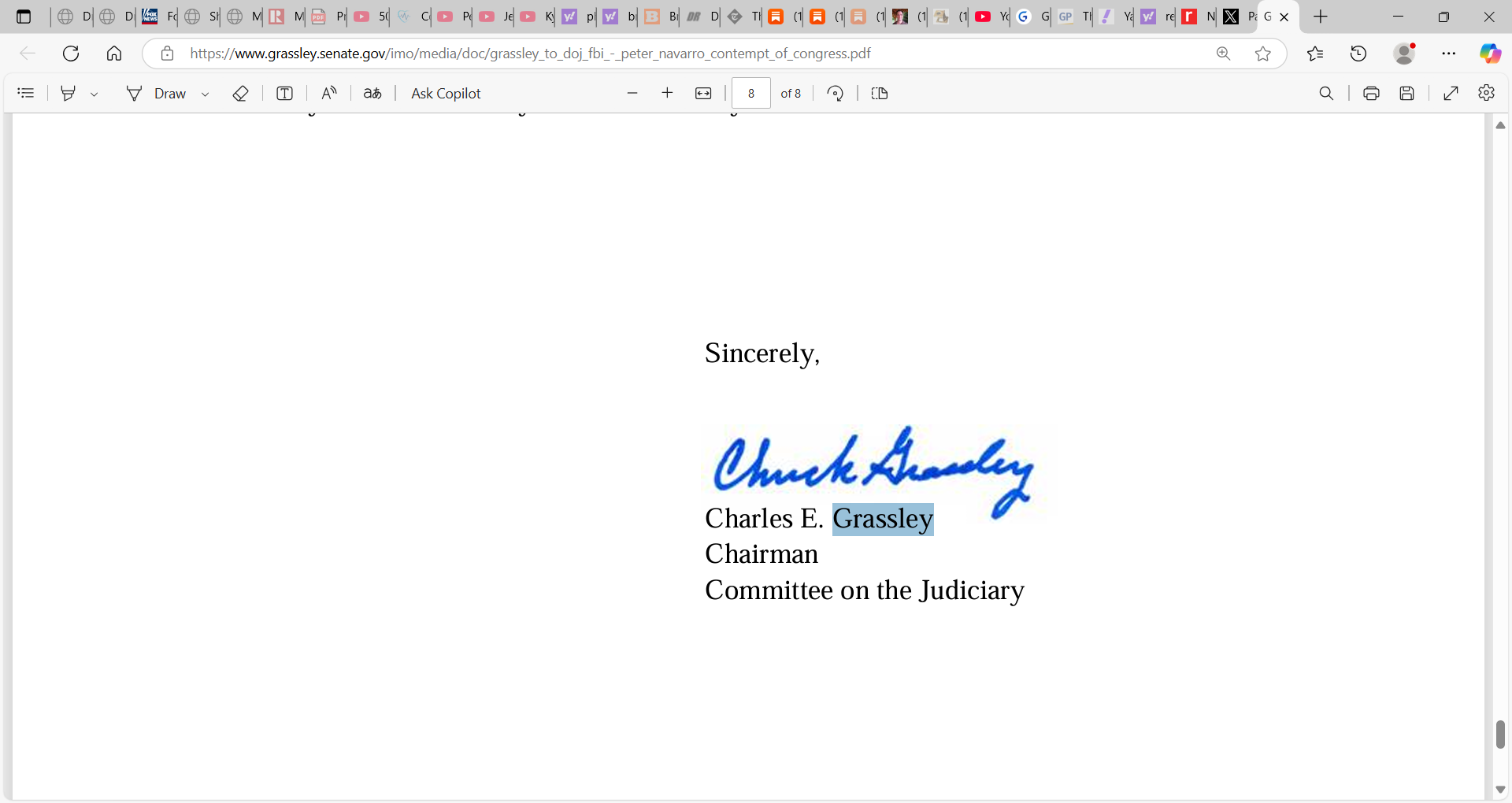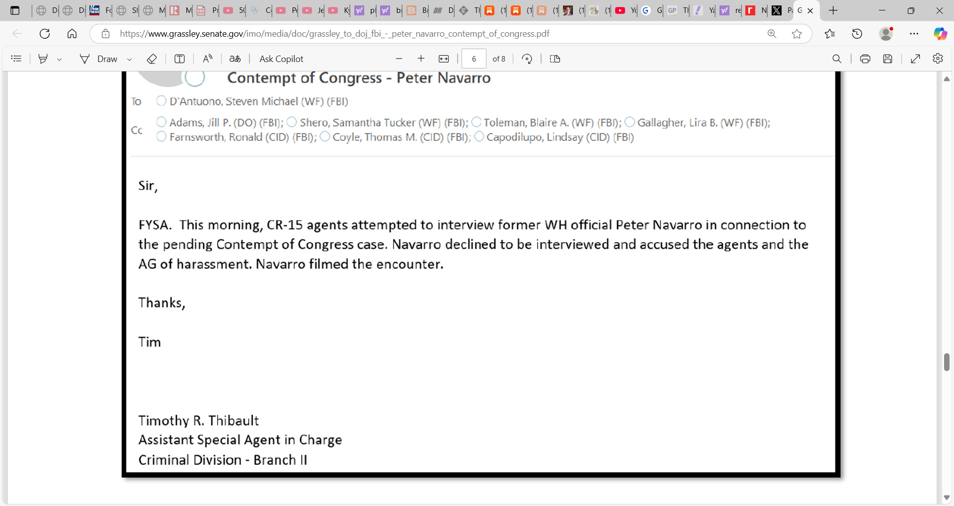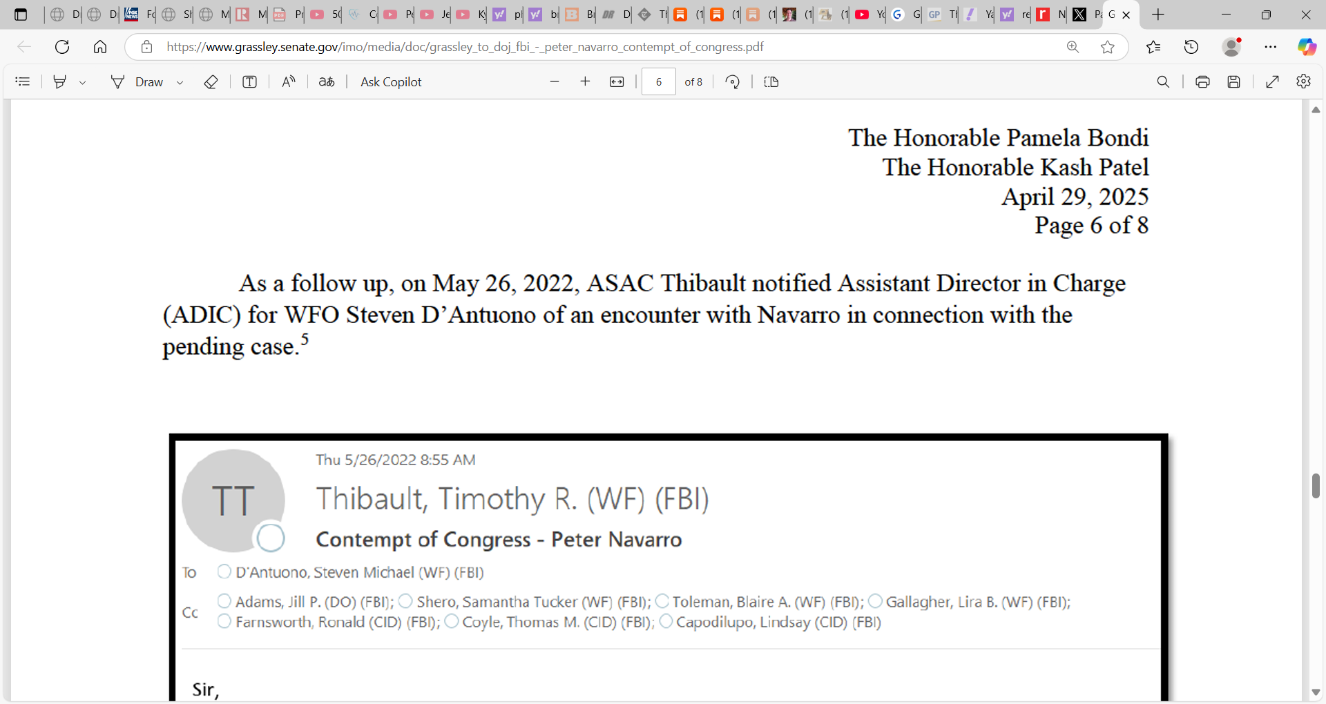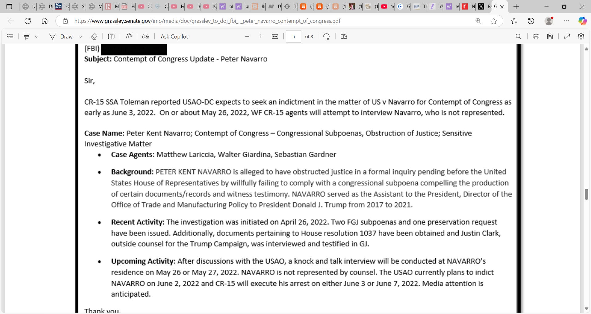 down; this was monstrous what did to Navarro; Senator Chuck Grassley wrote to AG Bondi and FBI's Kash Patel wanting the US population to read the Biden administration's internal workings on this
