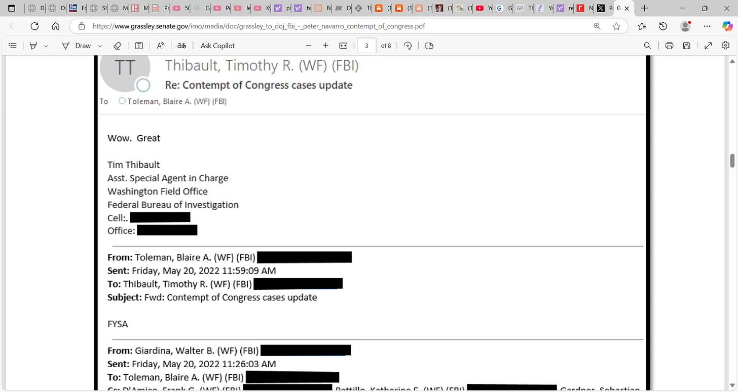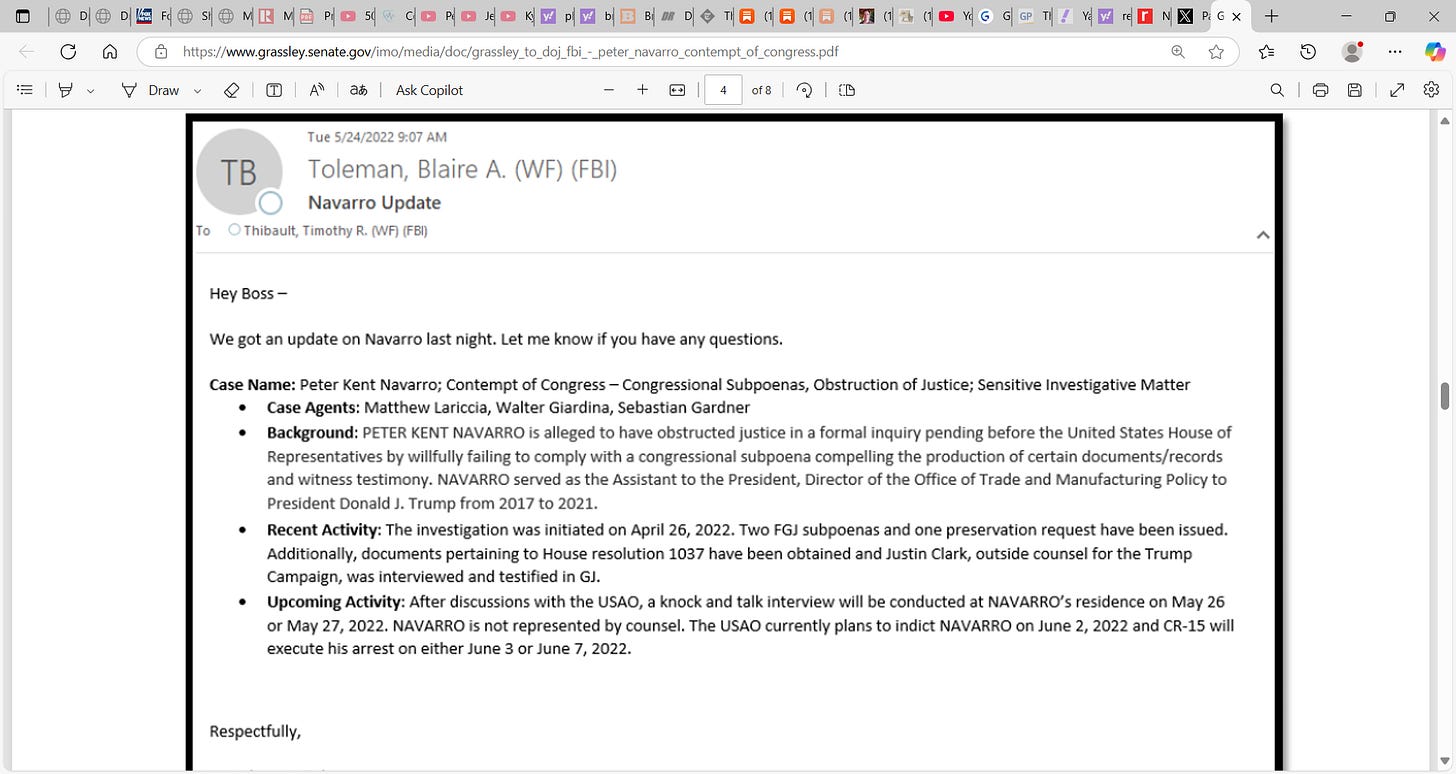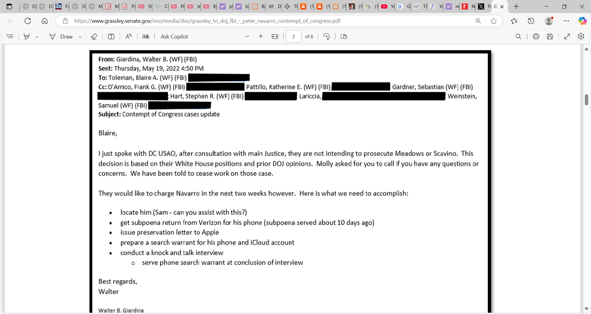 Look at internal e-mails in the FBI as they politically went after Navarro during the Biden administration, it raises questions of why the FBI needs to be RE-DONE & we call on Kash Patel to strip it