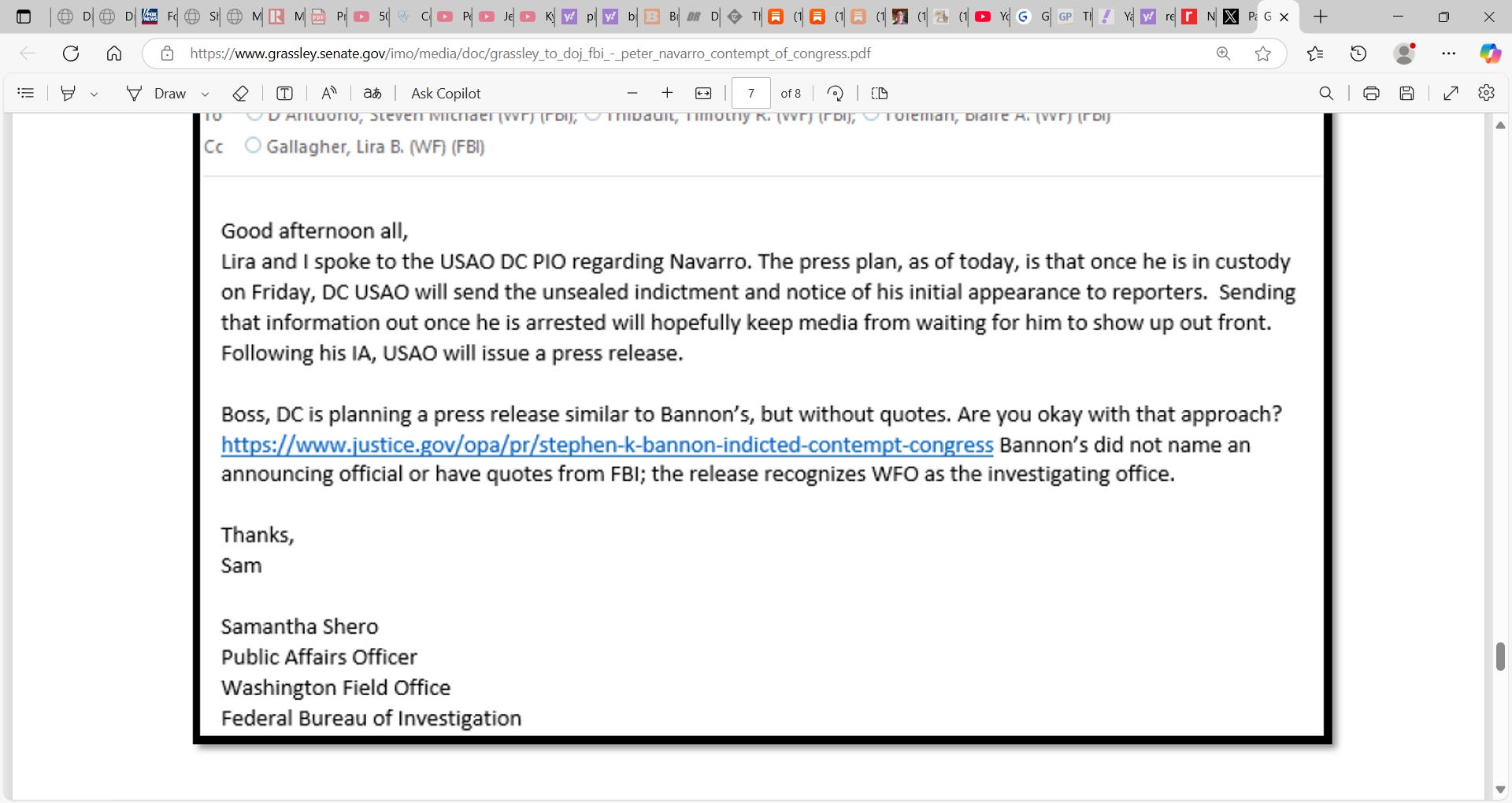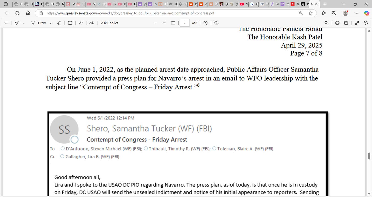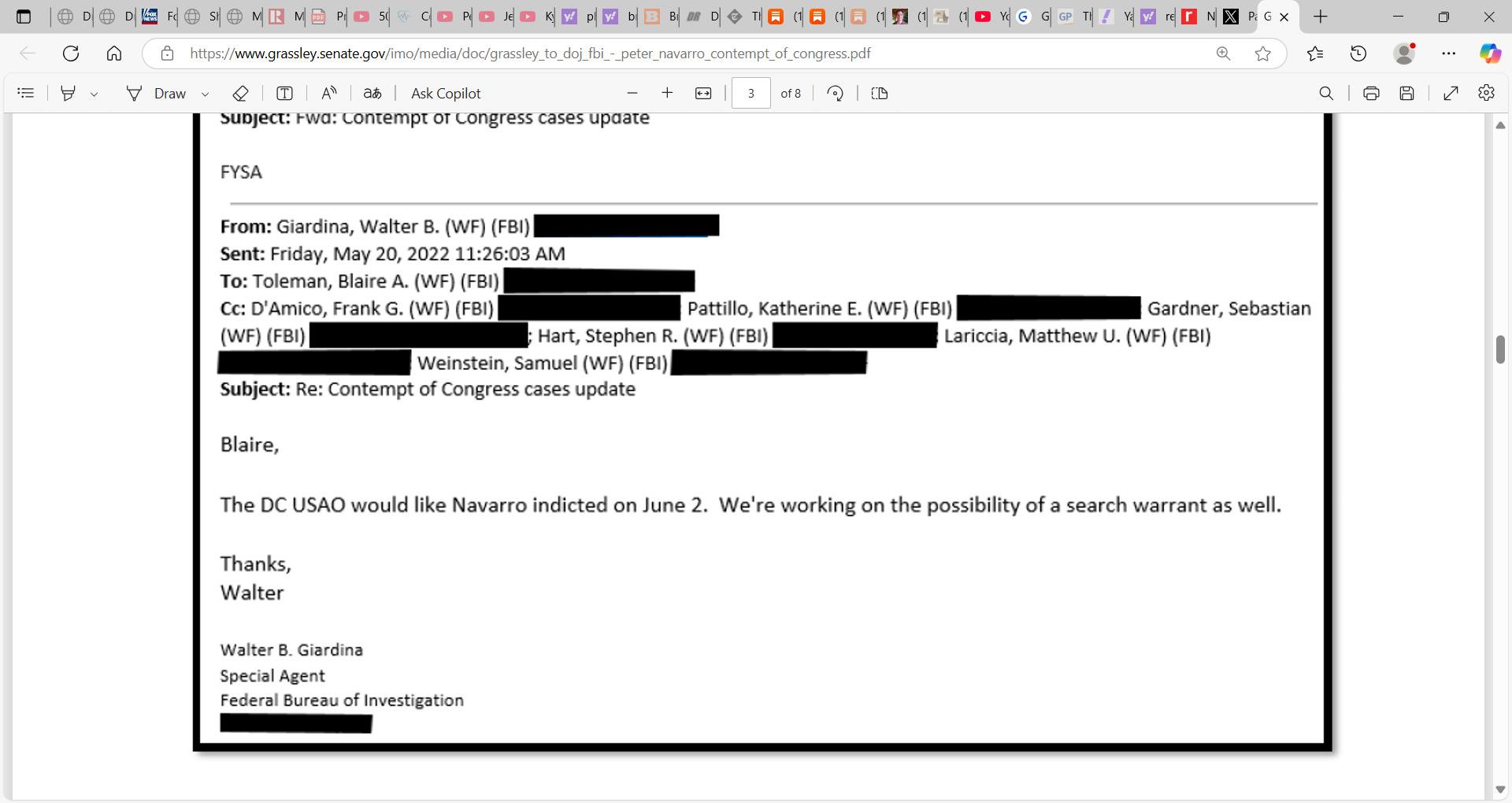 Look at internal e-mails in the FBI as they politically went after Navarro during the Biden administration, it raises questions of why the FBI needs to be RE-DONE & we call on Kash Patel to strip it