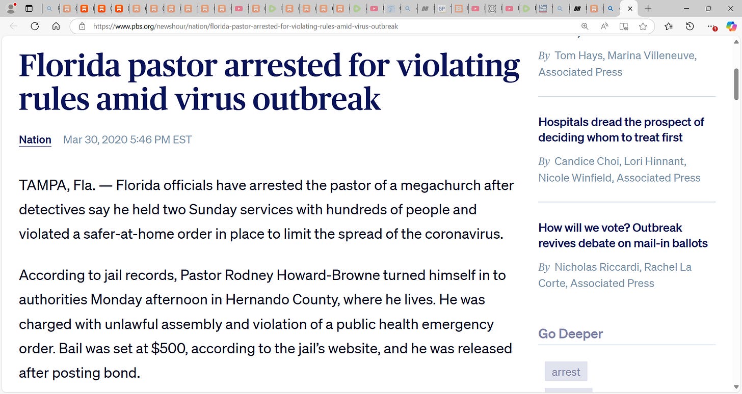This nutjob loon arrested Pastor Rodney Howard Browne, what a nutjob knucklehead and 47, huge mistake here, this guy ran crazy on people’s rights in COVID…remember his 50-foot social distance rule for boaters? Threatening to arrest boats that were not ‘socially distanced’? What? The garbage he spoke was embarrassing, made Rochelle Walensky, Biden’s CDC Director sound smart and blush, and made Robert Redfield (your CDC Director) seem like Oxford Rhodes material yet we saw how ‘smart’ he was…