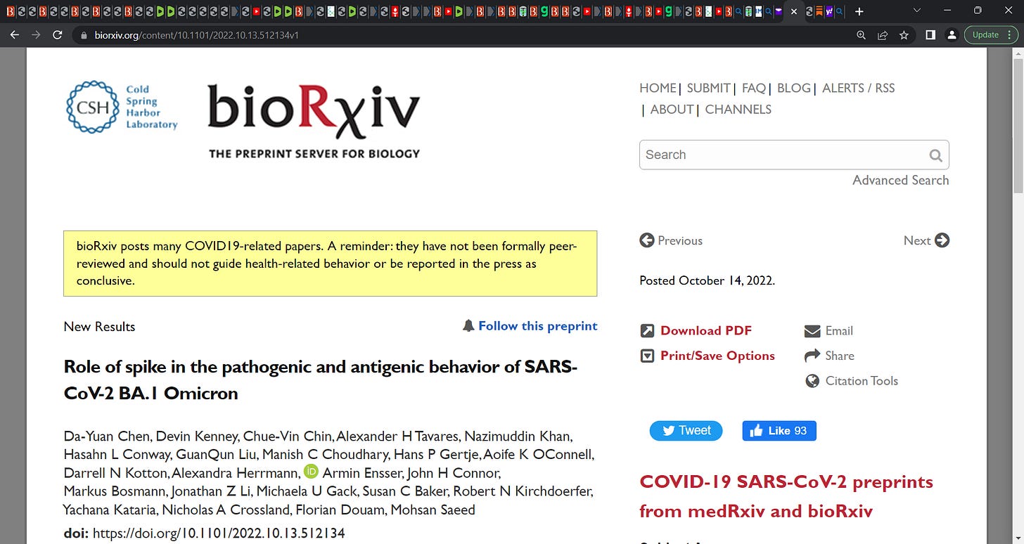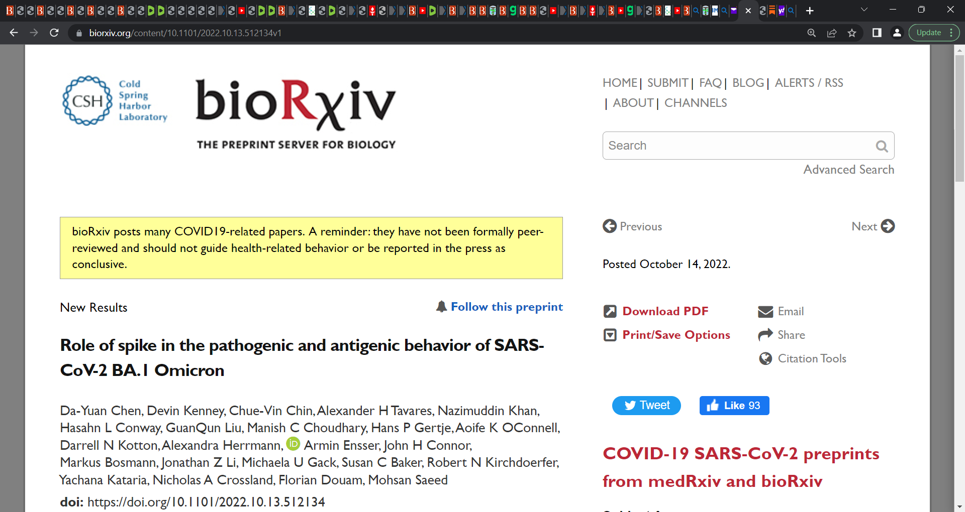 Based on this pre-print by Chen et al., we are looking potentially at a chimera that could wipe out humanity. The interesting issue is that Pfizer and Moderna (and CEOs Bourla and Bancel) were already taking us to a very infectious and deadly sub-variant with their non-neutralizing sub-optimal gene injection whereby the virus (omicron) had become resistant (largely) to the non-neutralizing vaccinal antibodies. Yet these Boston researchers may have beaten Bourla and Bancel to the punch and gotten us there. God forbid this leaks out for as described, this chimera can get deep into the lungs and infect and cause deadly consequences.