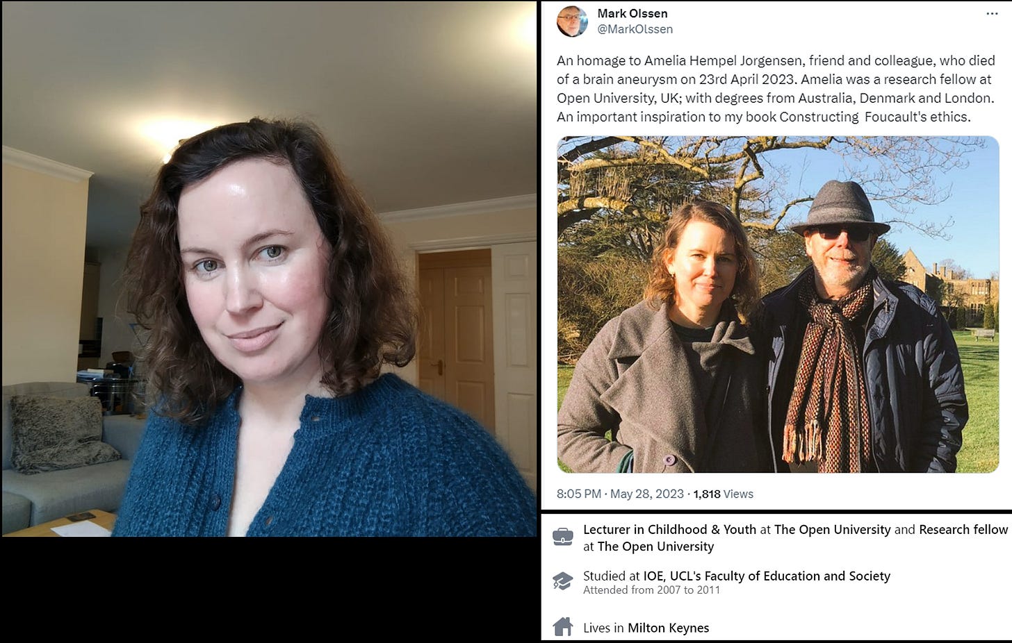 April 23, 2023 - Milton Keynes, UK - Amelia Hempel Jorgensen, research fellow at Open University, died suddenly from ruptured brain aneurysm