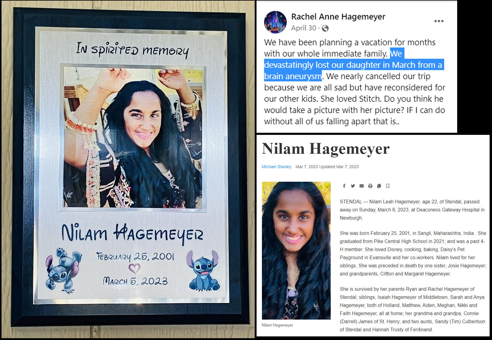 March 6, 2023 - Stendal, IN - 22 year old Nilam Hagemeyer died suddenly on March 6, 2023 from a brain aneurysm.