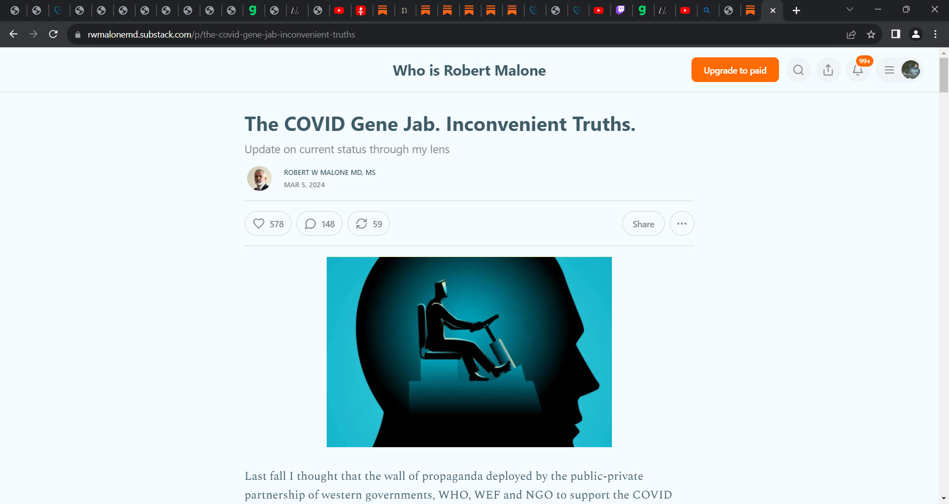Malone lives in a world he created, a twisted mind set that he could pull off an equally sordid fake on the population, that the deaths from the COVID mRNA technology has nothing to do with you