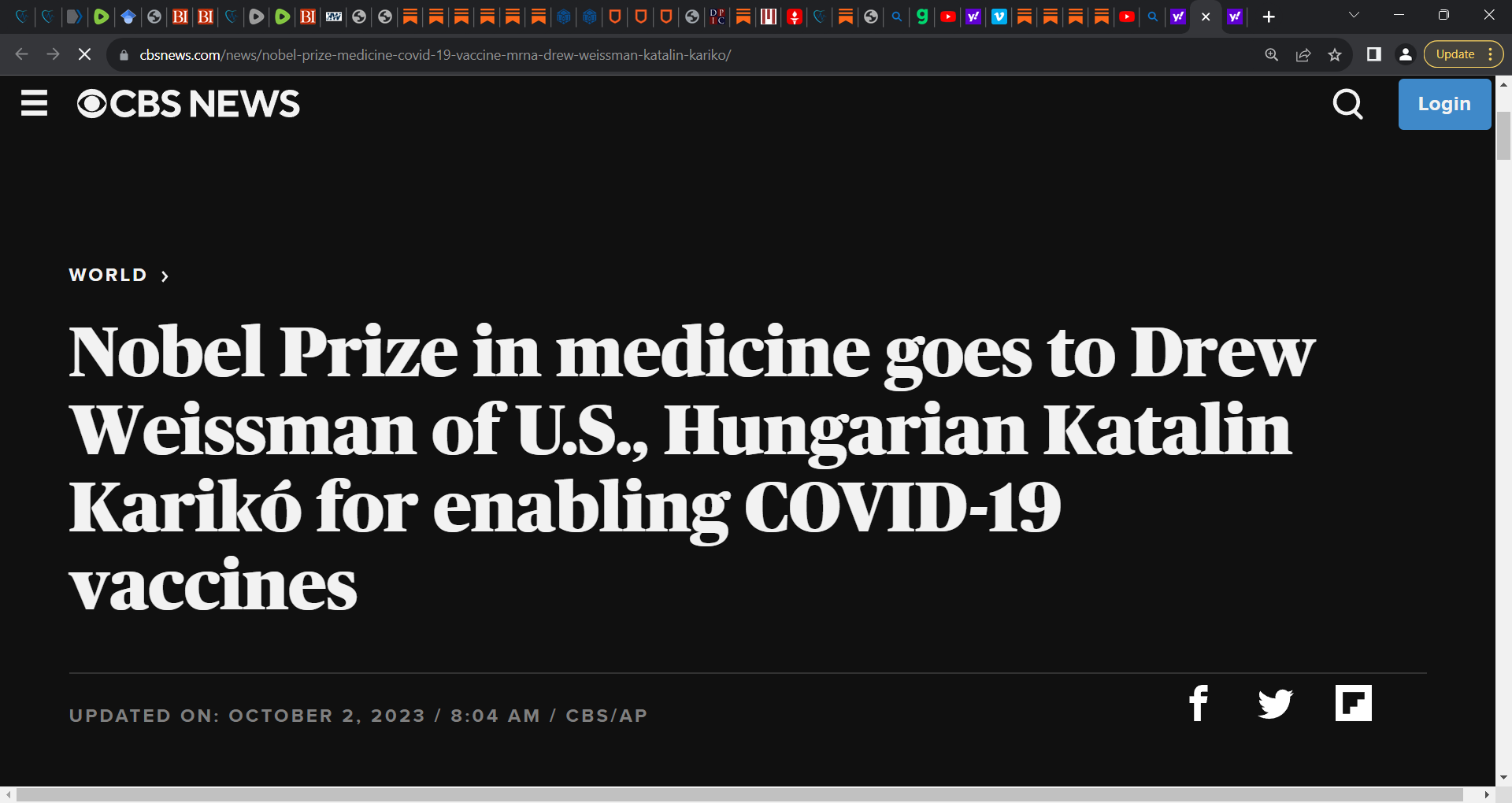 Let this Nobel award to the 2 death scientists be a chance to mend wounds and join forces to defeat the evil COVID mandarins, the COVID Taliban, the Pandemicists, the lockdown lunatics, the evil malfeasants from Fauci to Njoo to Azar to Bourla…