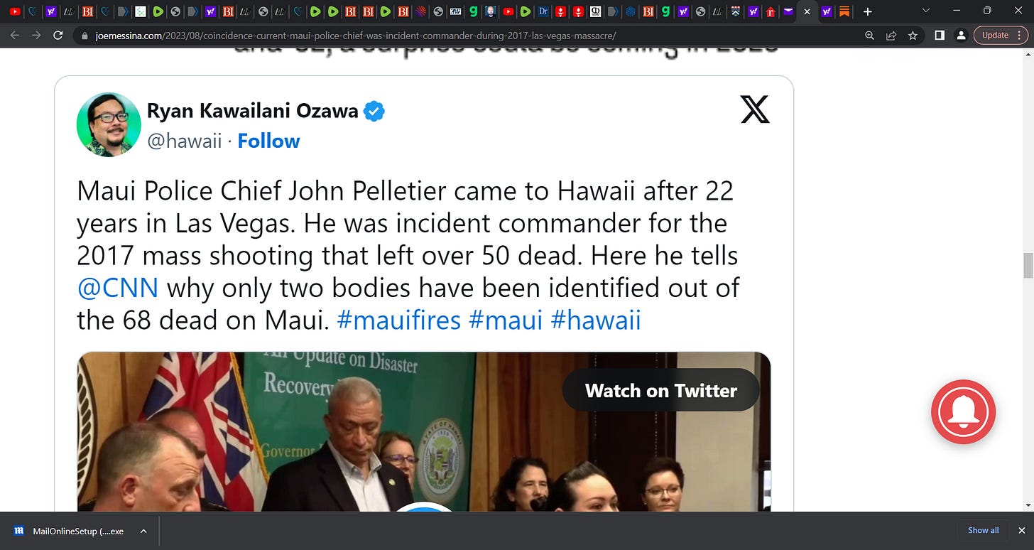 Mandalay Bay hotel Las Vegas, remember the mass shooting that killed over 50? Turns out Maui’s Police Chief Was Incident Commander During the 2017 Las Vegas Massacre;