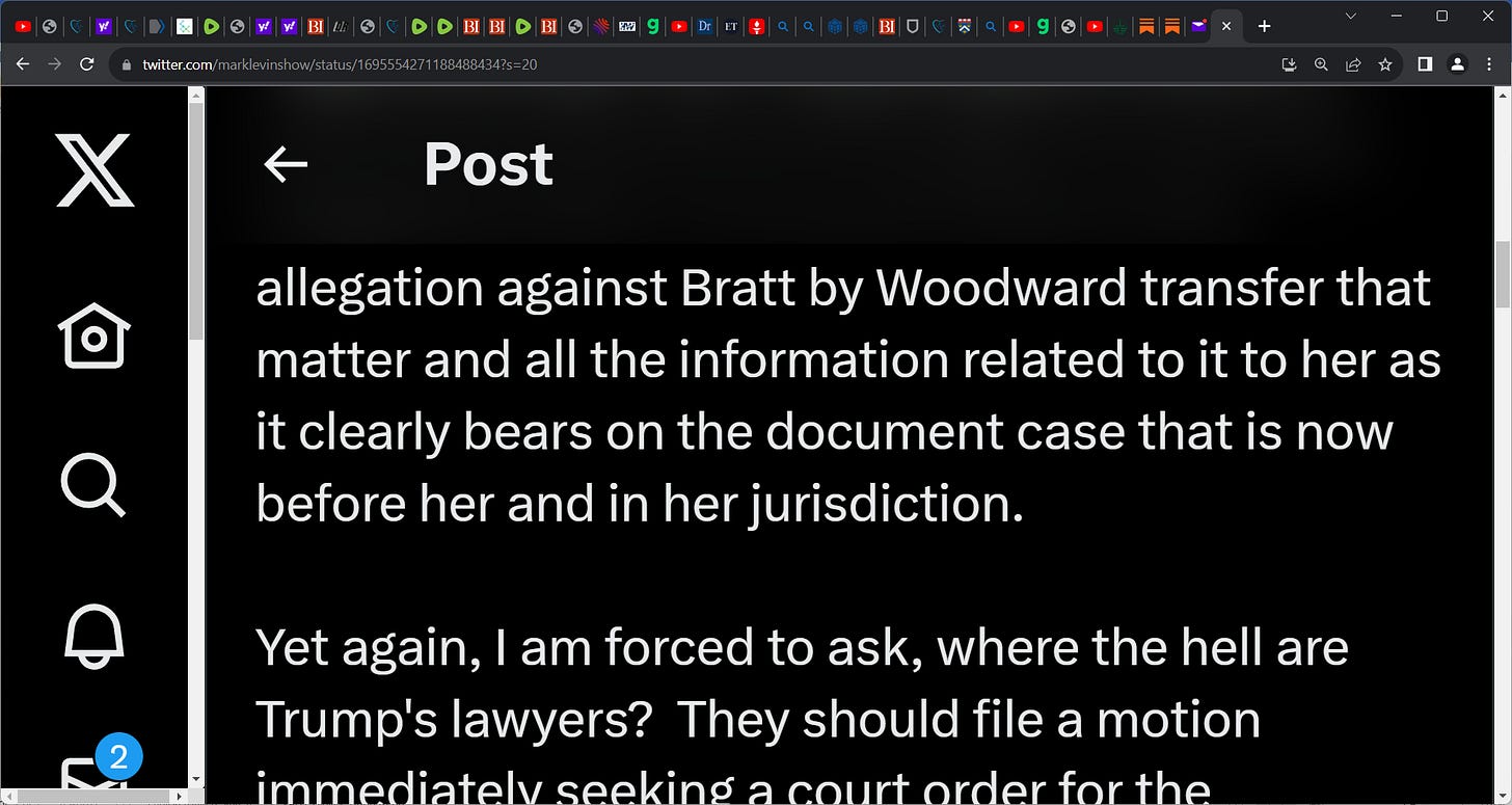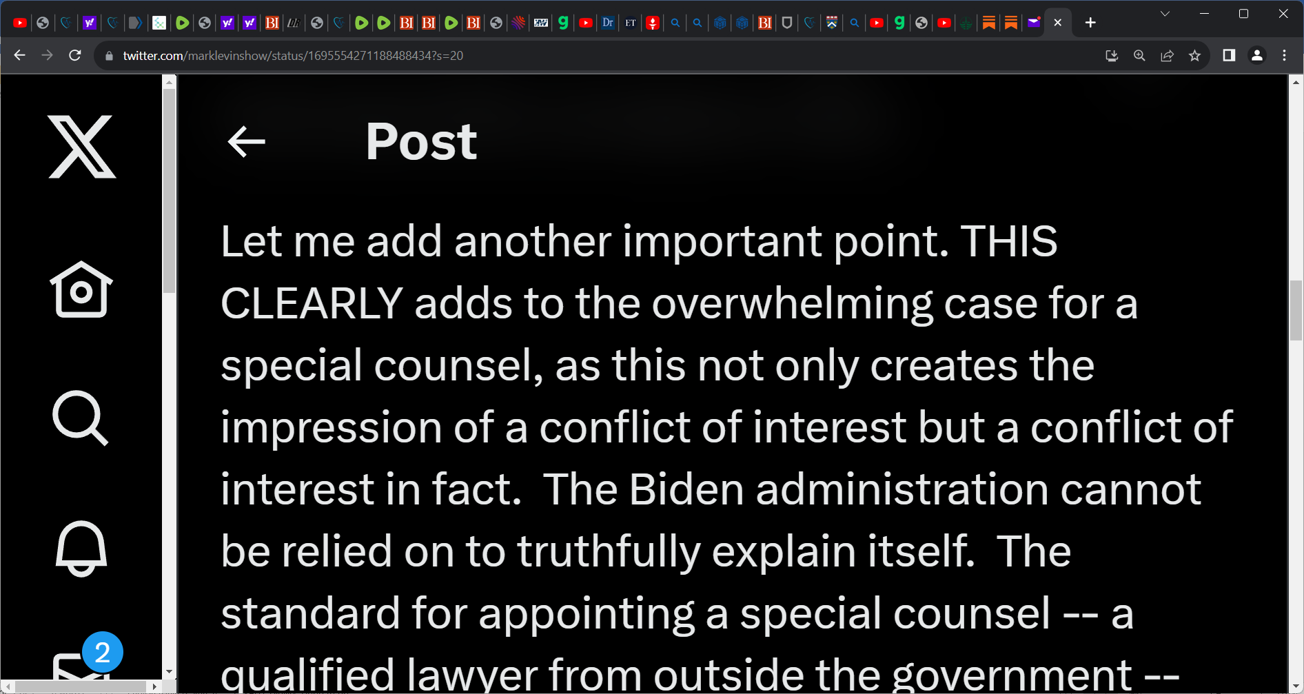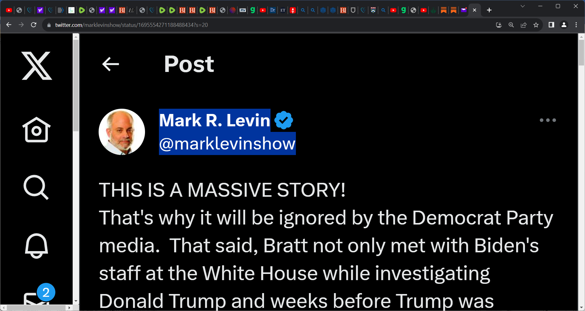 Mark R. Levin @marklevinshow on TWITTER (X) striking direct at the target site, deep into enemy territory, MOAB haymaker saying it as it is: Biden & his government using Jack Smith to take out Trump