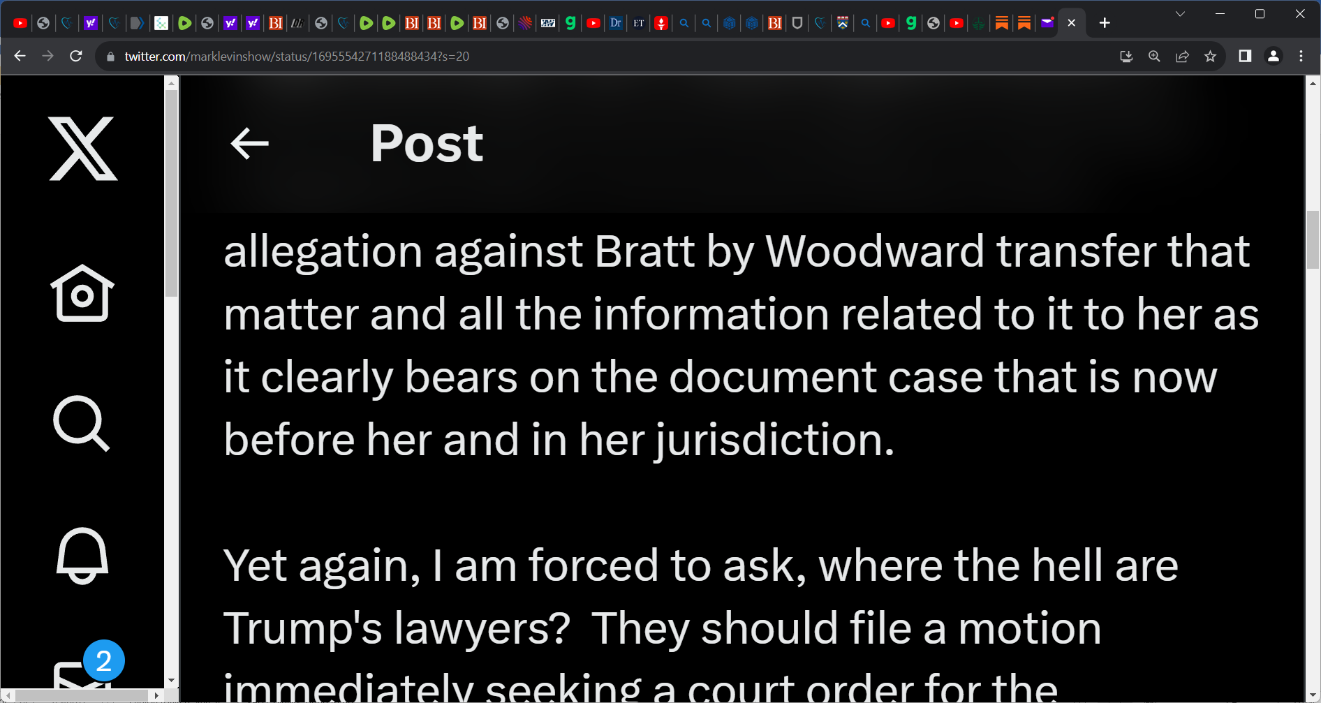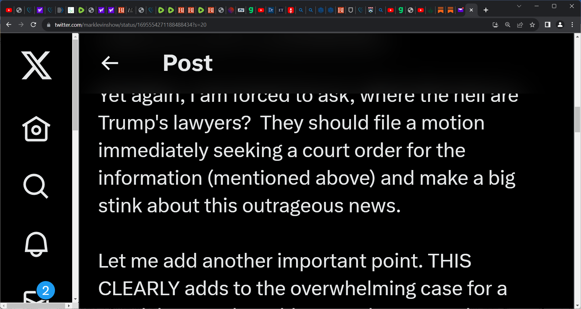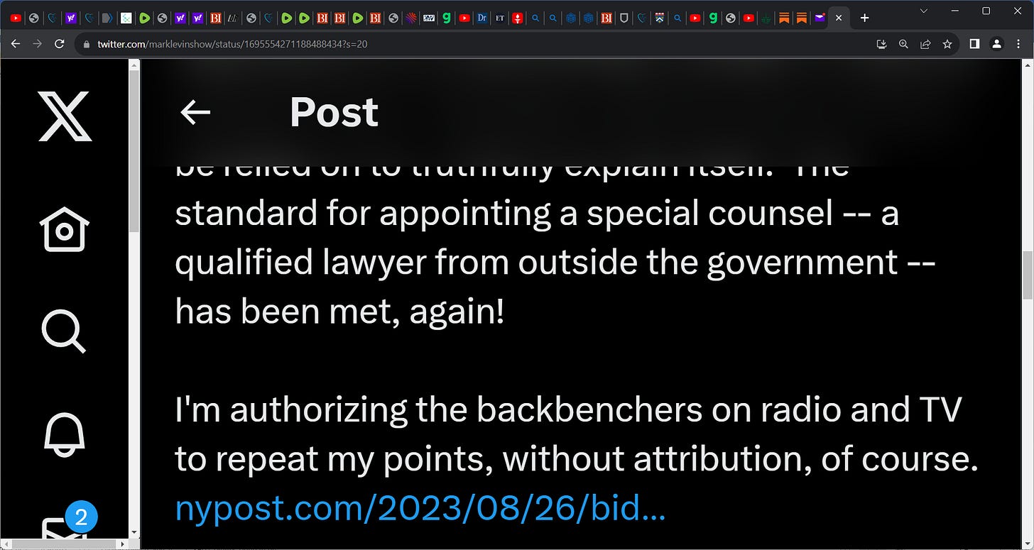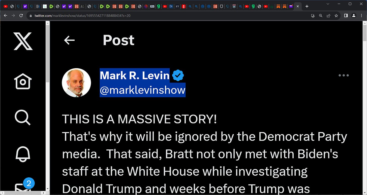 Mark R. Levin @marklevinshow on TWITTER (X) striking direct at the target site, deep into enemy territory, MOAB haymaker saying it as it is: Biden & his government using Jack Smith to take out Trump