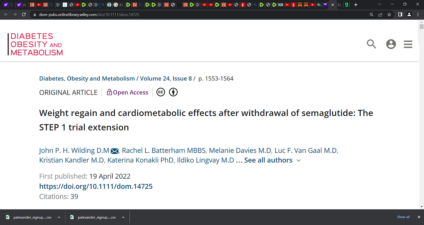 Massive weight gain (REBOUND weight gain) after stopping Ozempic, Wegovy, Semaglutide; subjects largely regained the weight lost; as I said before, the weight loss arena is a fraud, Jenny Craig,