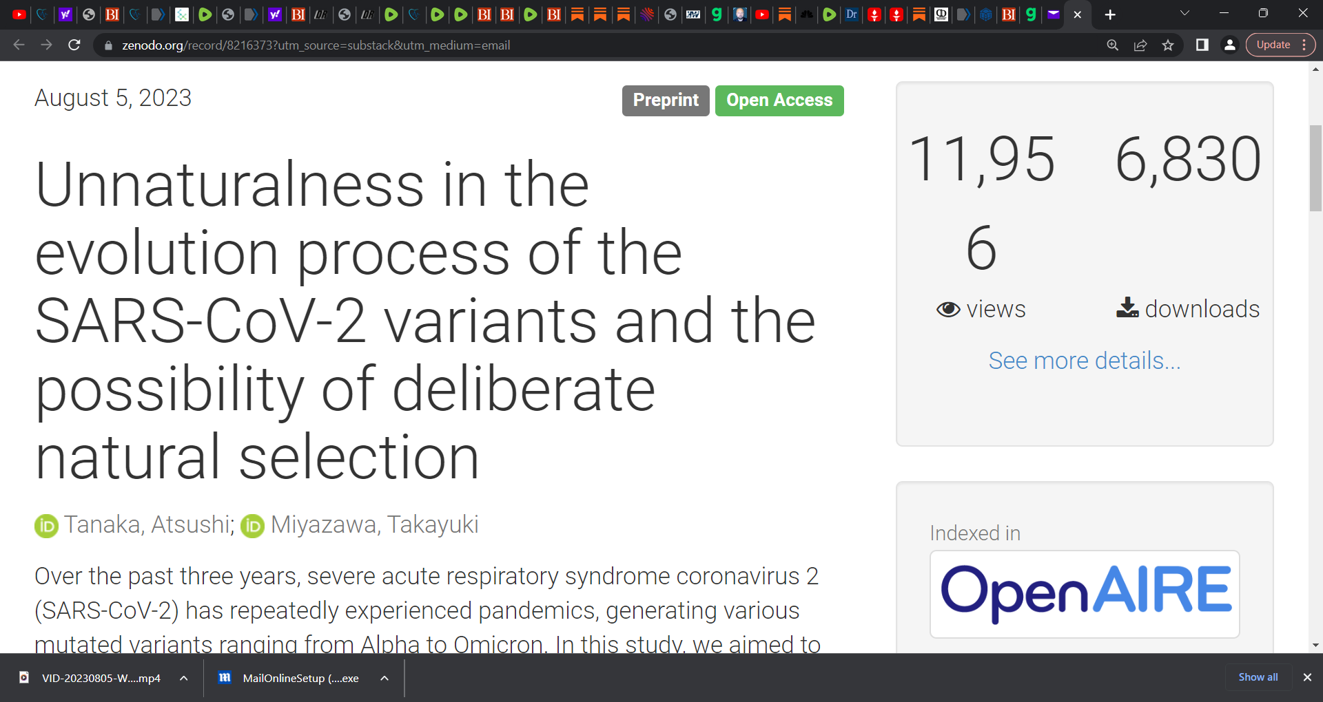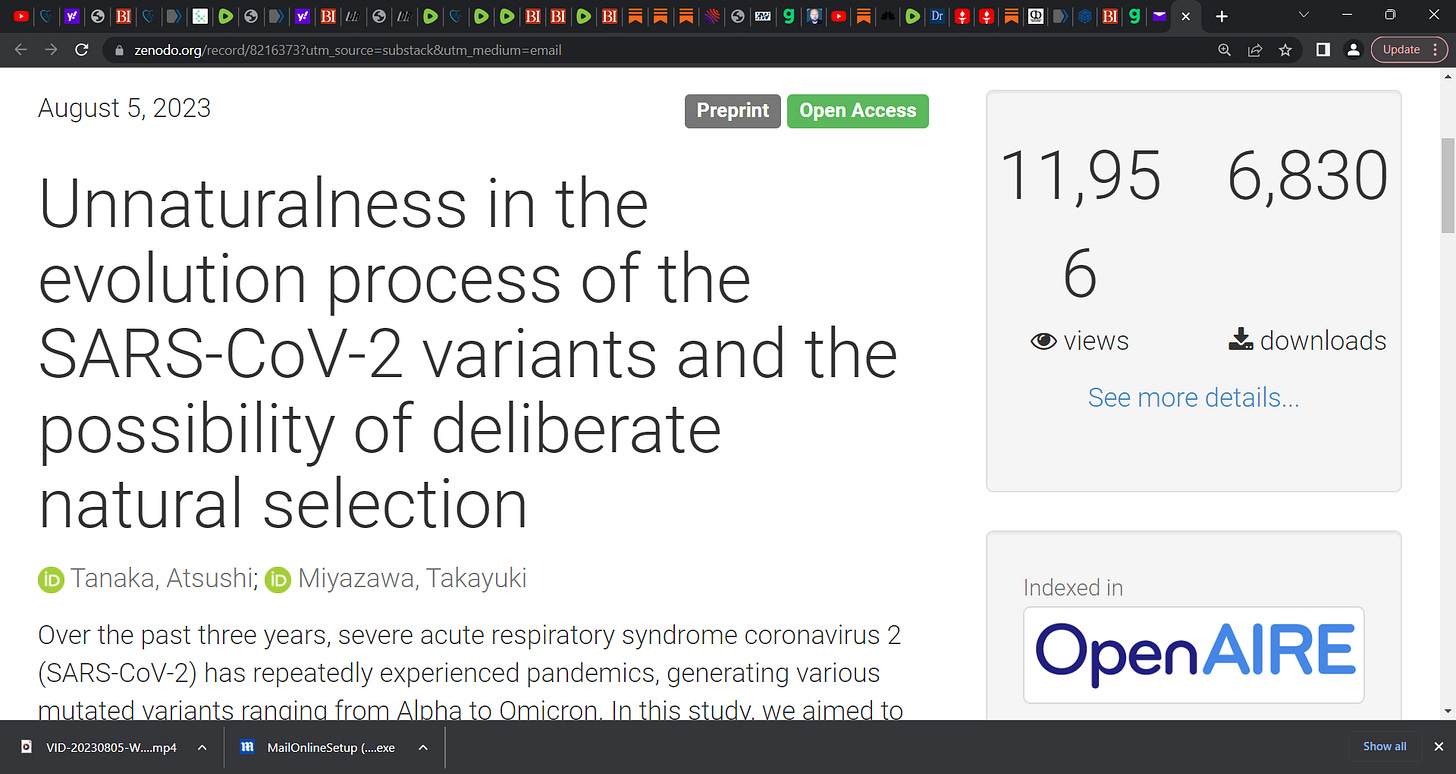 McCullough comments on mutational research by Tanaka and Miyazawa on the OMICRON sub-variant who concluded that it may have been intentionally modified by humans, potentially to prolong pandemic; IMO