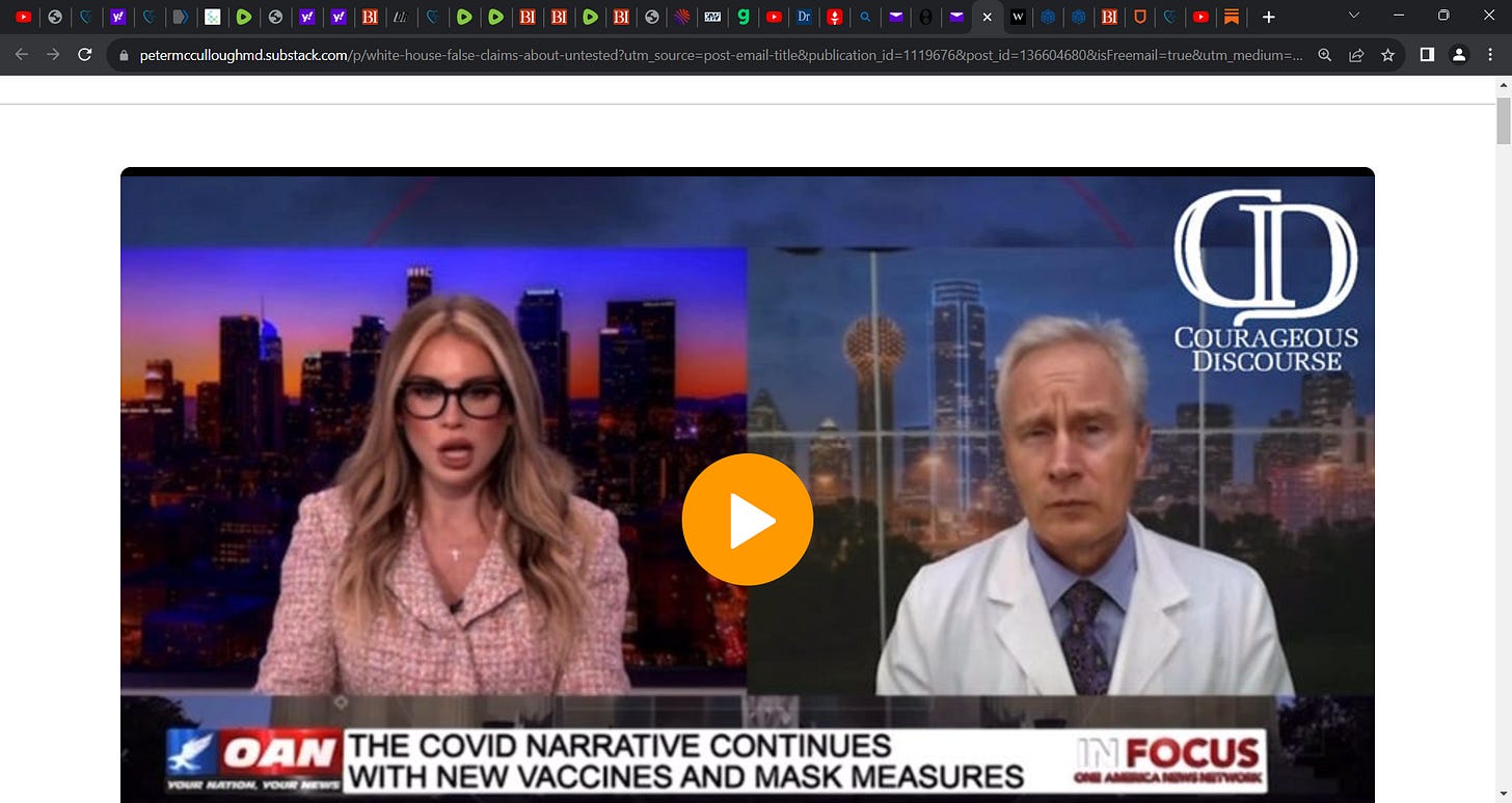 McCullough discusses the White House's False Claims about Untested, XBB.1.5 Boosters, Aerosolized Vaccines, and Spike Protein Detoxification; McCullough on One America News Network with Steinberg