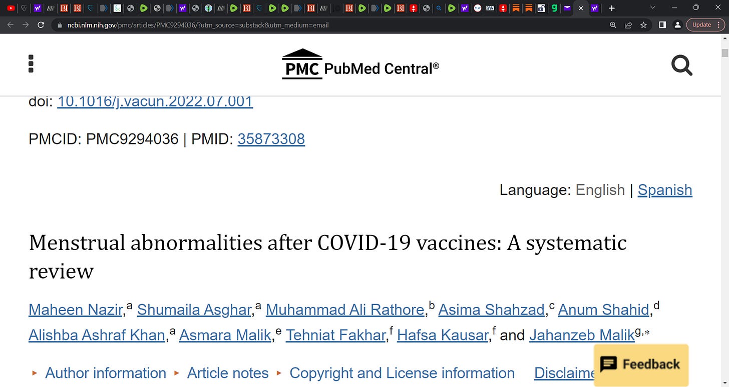 That NIH link is still trying to say that the covid virus is mostly (probably) what could be causing the menstrual irregularities. They say in almost the same sentence, that it's probably NOT due to the vaccines. They are still trying to deny the obvious culprit, which is the vaccine. Such BS.
