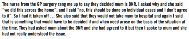That statement was issued because the CQC found that 34% of people working in health and social care were pressured into placing ‘do not attempt cardiopulmonary resuscitation (DNACPR) orders on Covid patients who suffered from disabilities and learning difficulties, without involving the patient or their families in the decision.