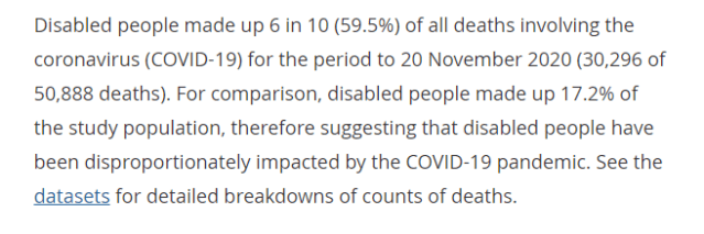 Three in every five alleged Covid-19 deaths occurred in those who suffered learning difficulties and disabilities (see here).