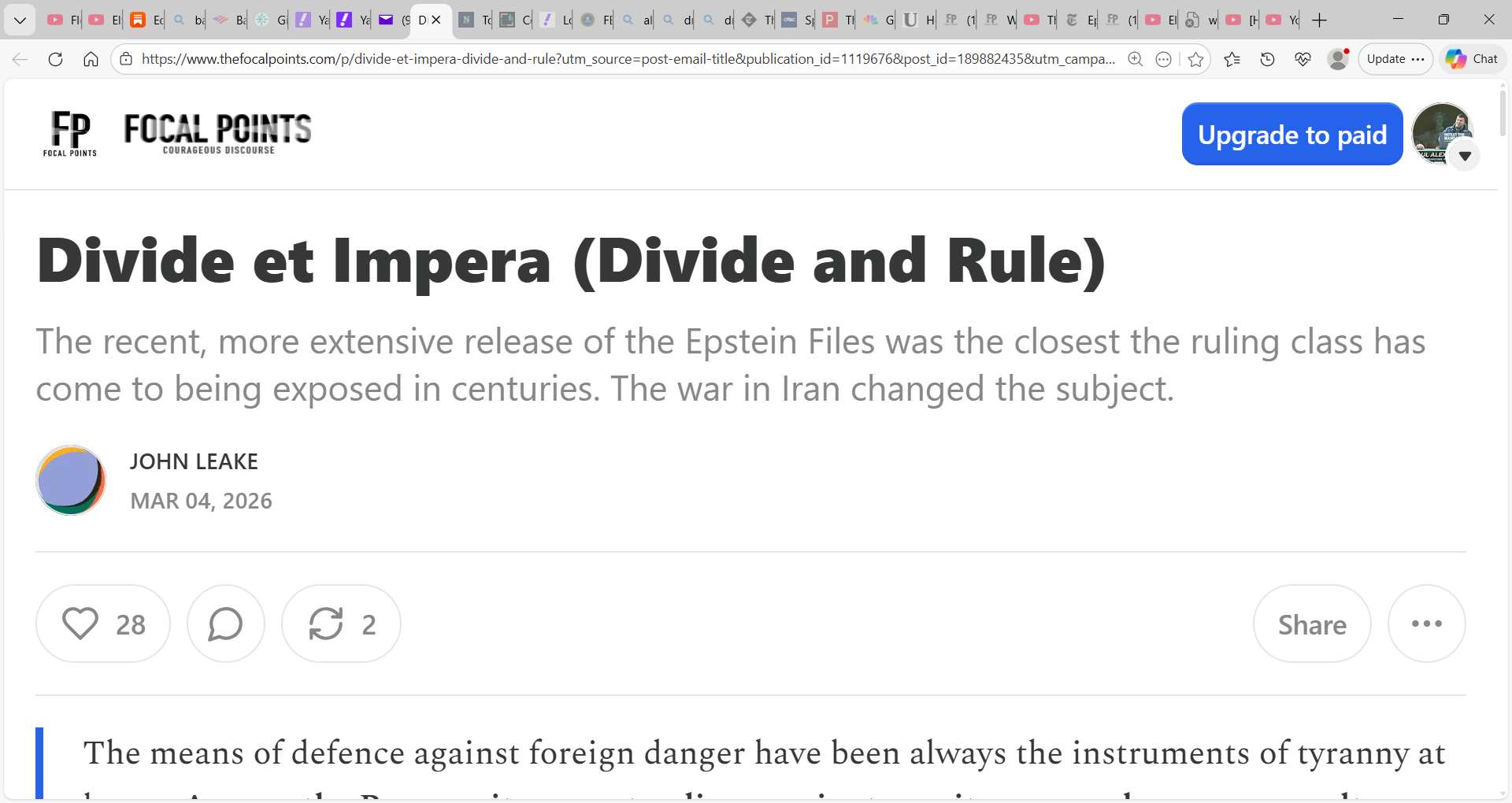 The recent, more extensive release of the Epstein Files was the closest the ruling class has come to being exposed in centuries. The war in Iran changed the subject.’