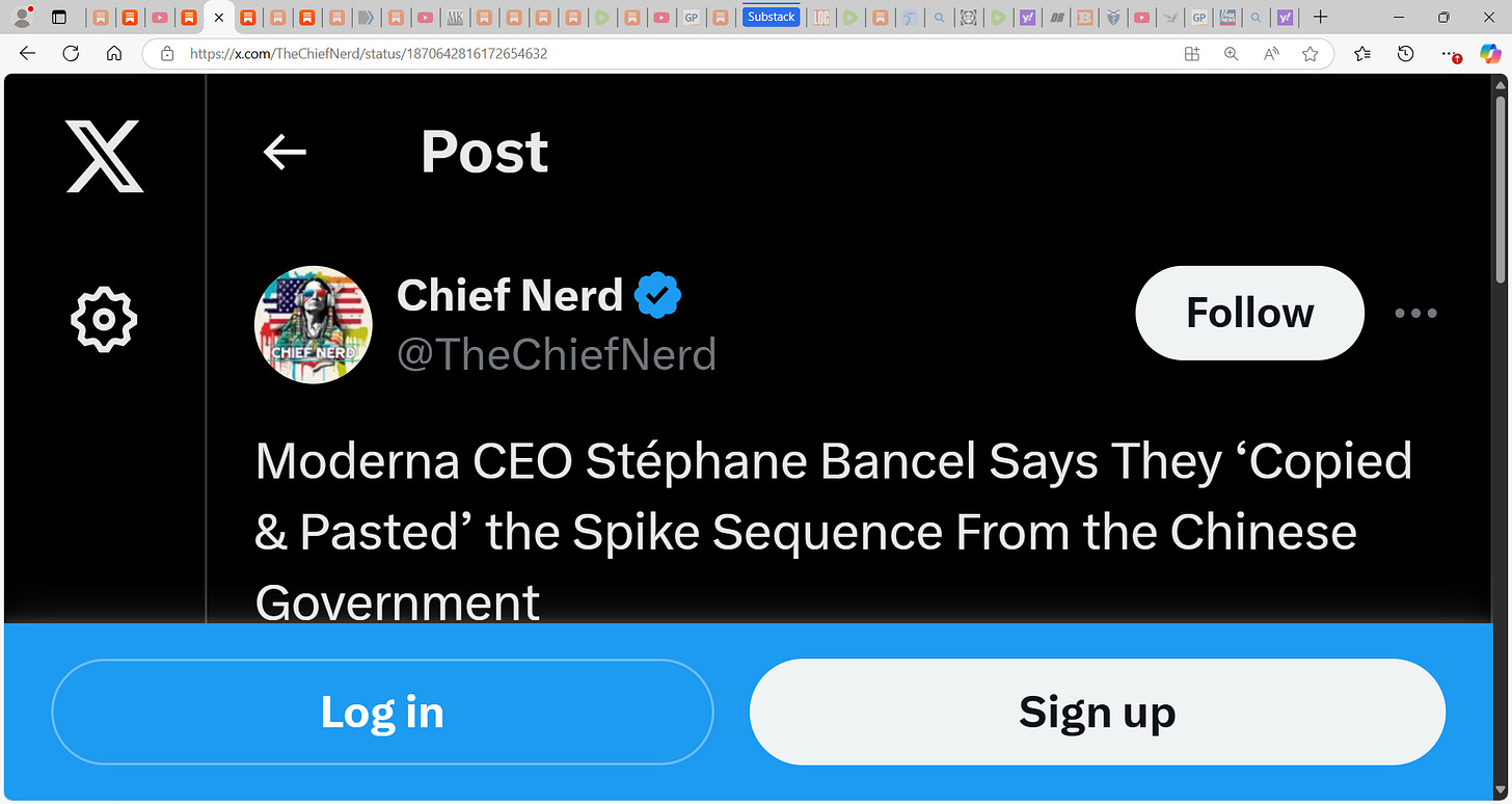This fucker Bancel, CEO of Pfizer, tells you here they did that vaccine in silico, means on computer, and he is telling you that it’s the same mRNA in your cells…he is a brutal animal, liar, deceiver, he knows the A,G, T, C, and uracil (bases) exists in you but not arranged as amino acids in certain triplet codon making/coding for spike protein…spike protein is foreign to you…the building blocks may be AGTC and U but our body does not have spike protein in you…it does not exist naturally in you as he said…spike protein is a particular arrangement of bases AGTC and U as building blocks of proteins. In your cells…and let me say it this way…