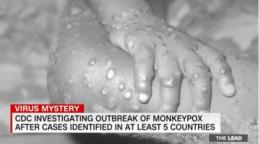 Now to the core focus of this substack, ‘monkeypox’. Someone very high level in COVID pandemic response, top level intellect, came to me and said “Paul, I do not think it is even real”. He further said that they are well capable of juicing this up and creating this panic out of nothing. Fabricated. He said he needs to see a real case, a real image. He is not convinced. He shared his thoughts that were quite interesting. He asked me if I believed him. I said ‘very possible’. Given the cast of characters we have had to deal with who have led this pandemic response. Why can’t they bring a fake monkeypox outbreak/epidemic?