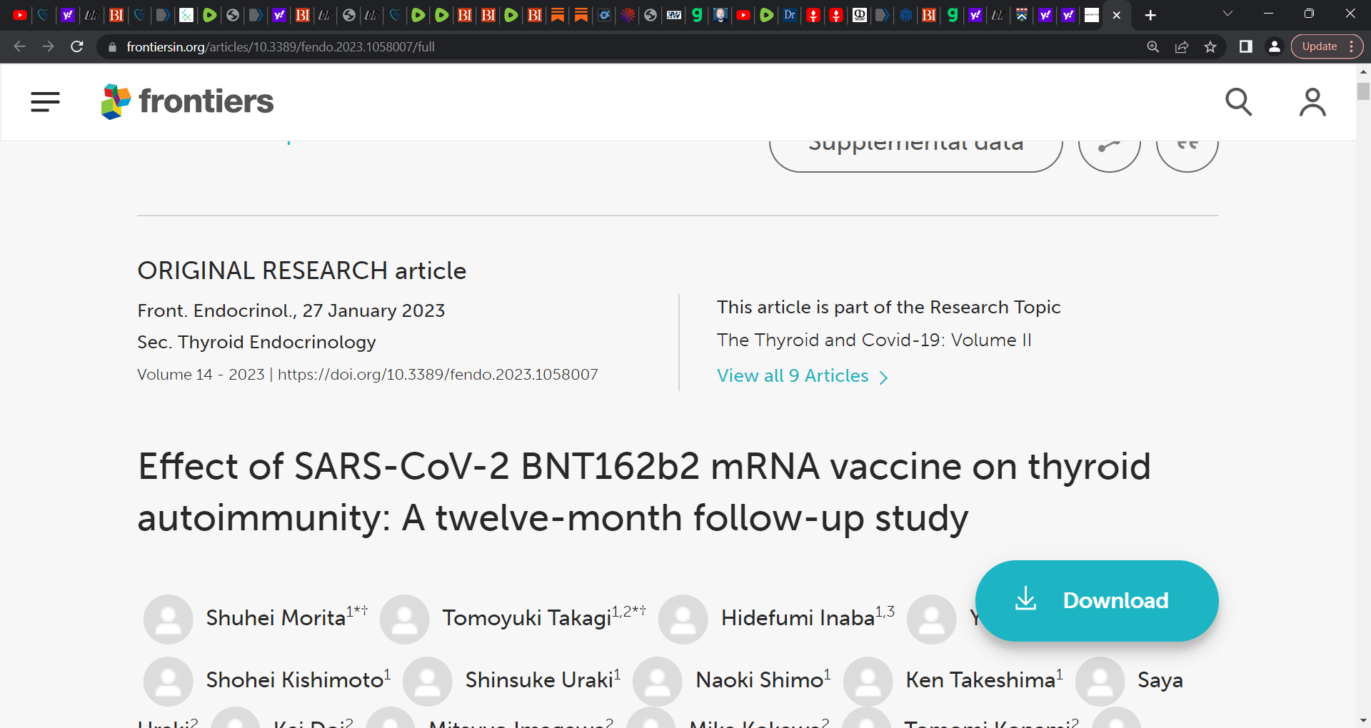 Morita: Did Morita et al. show us that the Pfizer mRNA technology gene based vaccine drives thyroid autoimmunity via a twelve-month follow-up study? Yes! TgAb was increased by the third dose. Increase