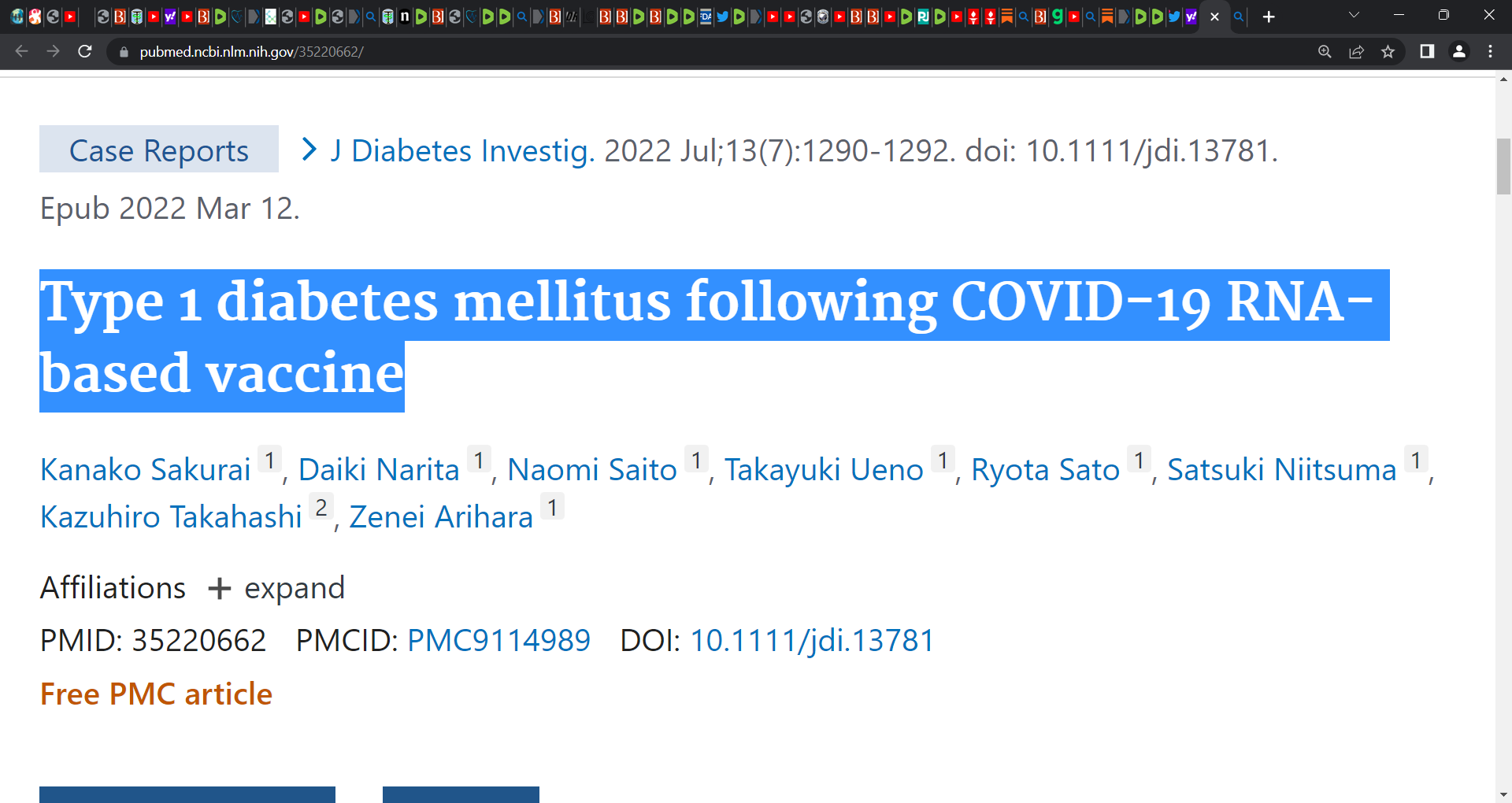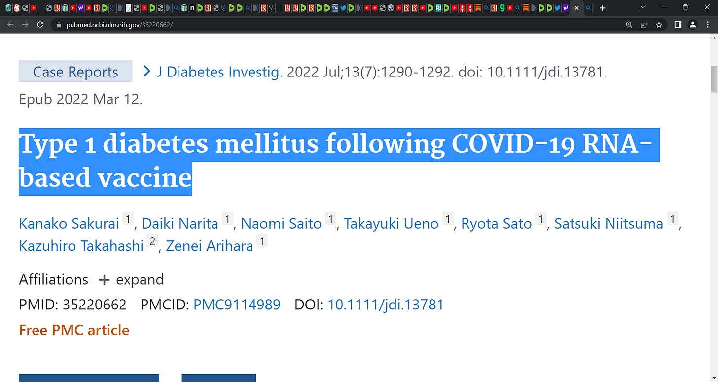 mRNA COVID gene injection is creating challenging issues for our populations: "Type 1 diabetes mellitus following COVID-19 RNA-based vaccine"; this risk is not only in adults but children too