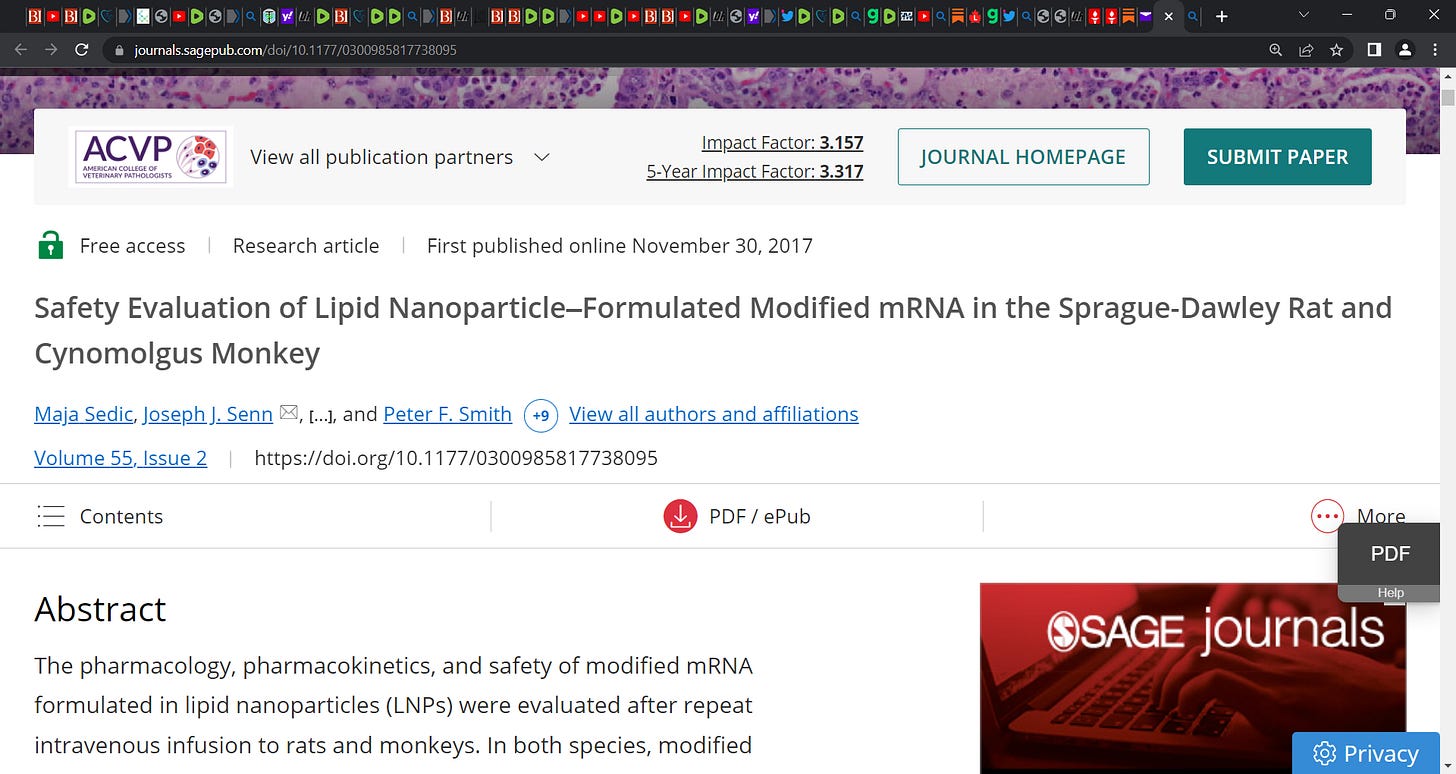 mRNA, synthetic mRNA (modified mRNA) formulated in lipid nanoparticles (LNPs) was always potentially TOXIC & all those involved knew it! 2017 study by Sedic is key in our understanding & why