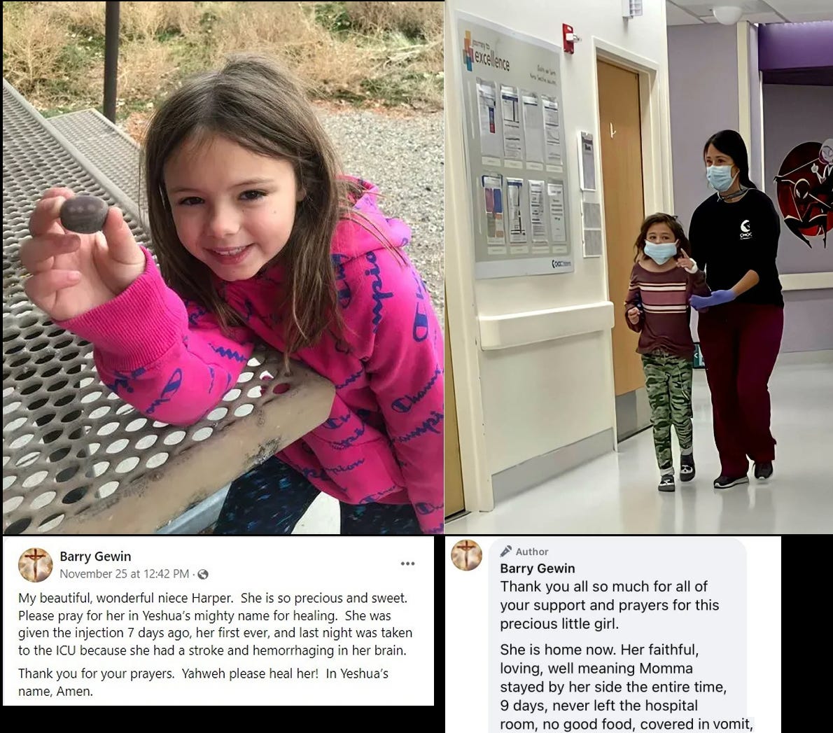 Pennsylvania - 8 year old Harper Gewin had a stroke and brain hemorrhaging 7 days following Pfizer mRNA jab (Nov.2021) (click here)