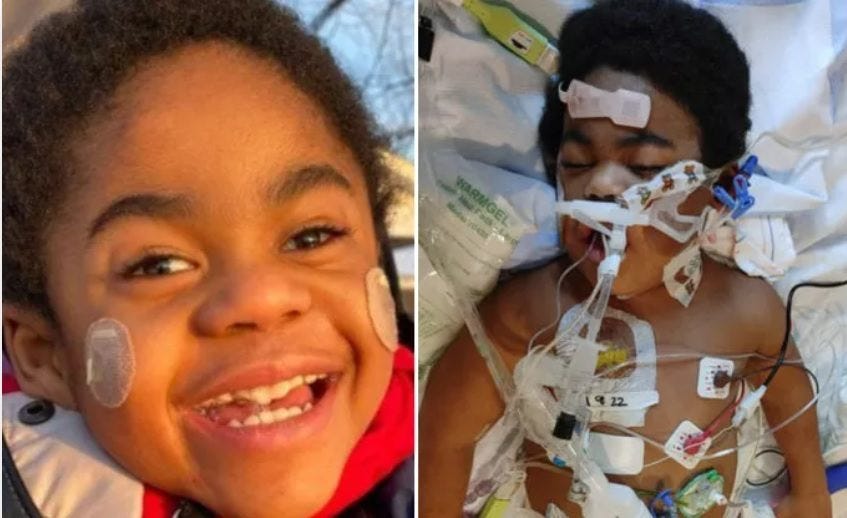 Minnesota - 6 year old boy Milo Edberg developed myocarditis after Pfizer COVID-19 vaccine on Dec.10, 2021. He remained intubated for a month and a half (click here)
