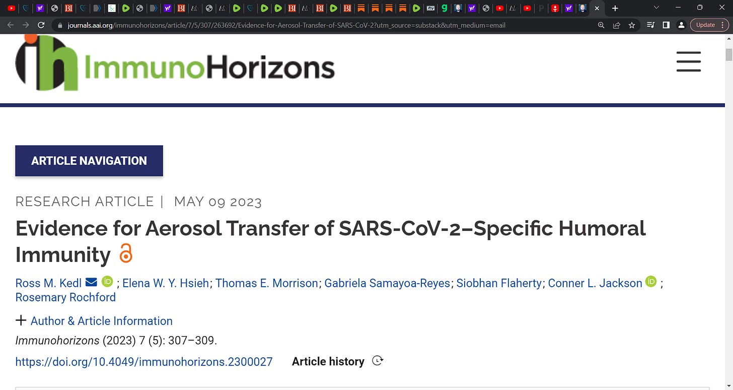 Fact is that it is abundantly clear now that we can shed the COVID vaccine content, the induced spike protein itself, the sub-units 1, 2 etc., mRNA from the vaccine, the induced vaccinal antibodies, we can, and these can be shed and passed on in bodily fluids, sweat, saliva, groinal secretions, we know via placenta, breast milk, we have the science, via exosomes packed with spike and mRNA, full length or fragments, antibodies from saliva, breath, droplets etc.