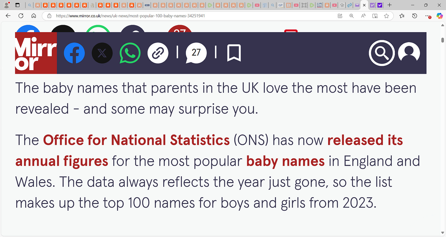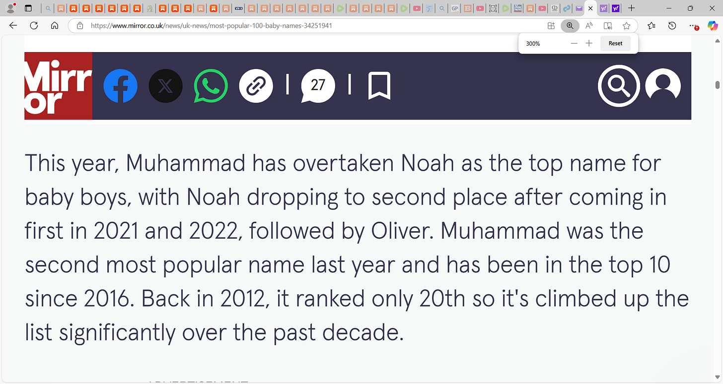 Muhammad top UK baby name...hhhhmmm...I wonder what it is in America now and what it WILL be soon if we don't get our immigration shit in order; will it too be Muhammed or Santiago? David? Ted Kennedy