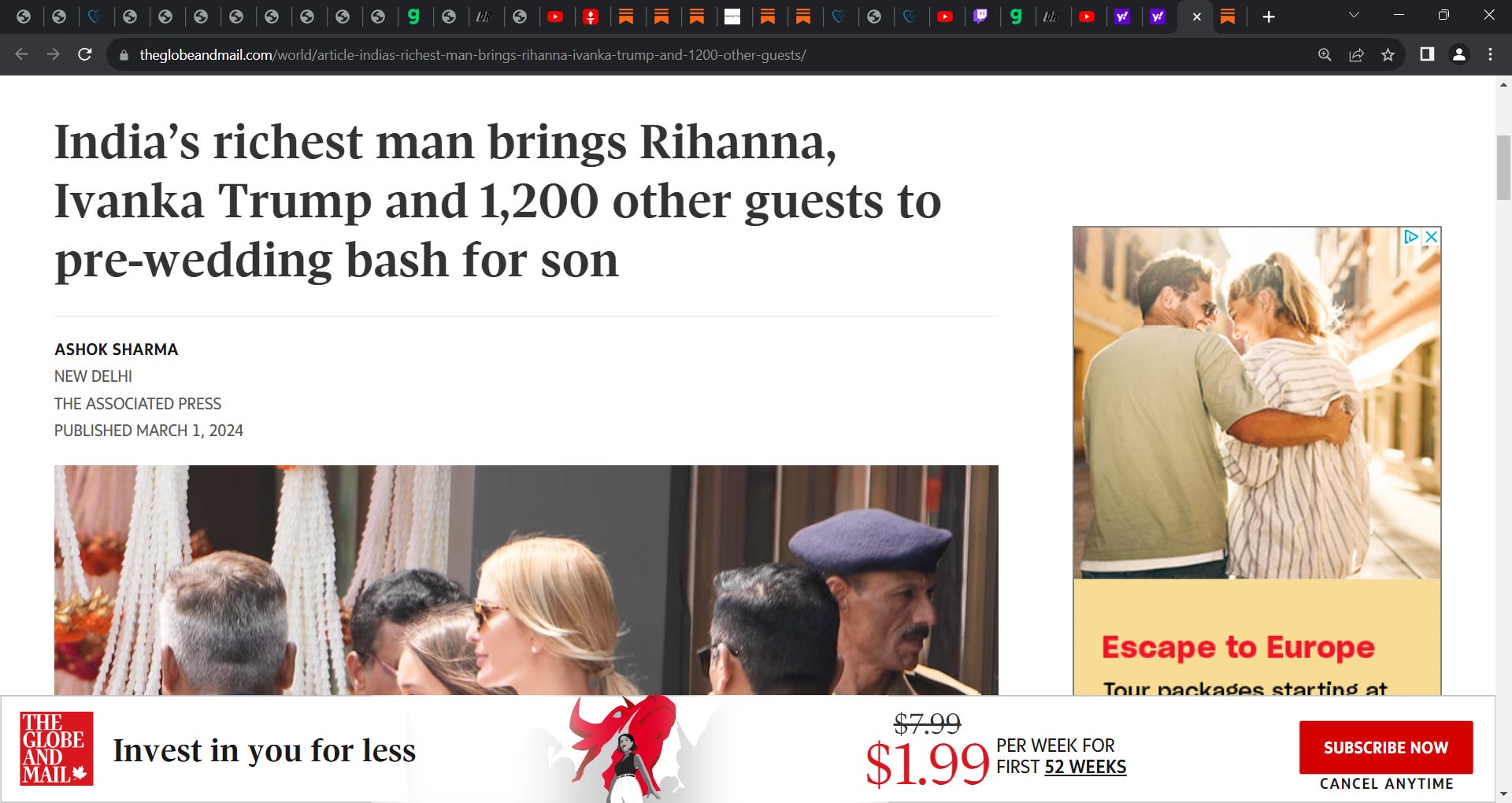 Over the weekend, the richest man in India, Mukesh Ambani, spent about $150 million to marry off his youngest and fattest son, Anant, before various and assorted members of the global elite. It was the wedding of the year!