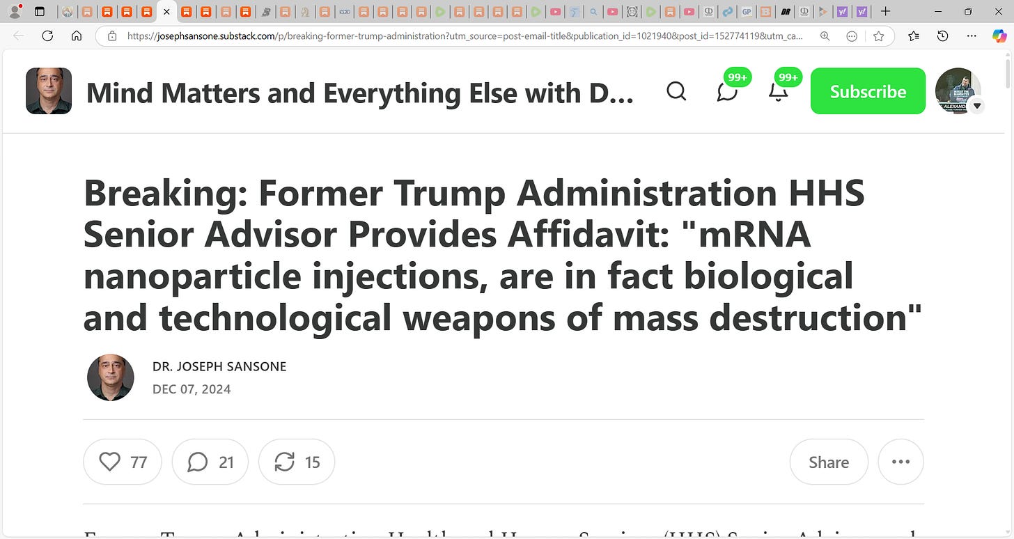 My Affidavit in Florida case filed by Dr. Joseph Sansone that COVID mRNA nanoparticle transfection injections, are in fact biological and technological weapons of mass destruction"