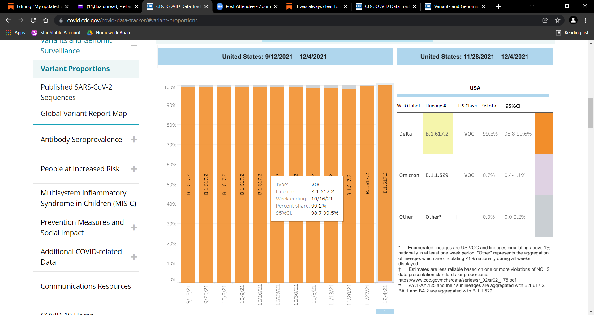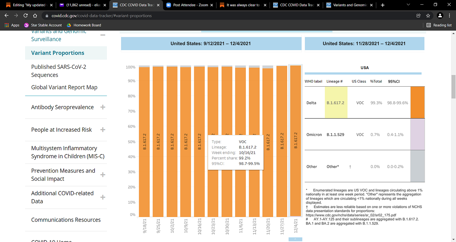 this is the updated screen shot of where Delta is still 99% and Omicron is <1% circulation, be careful with that tool by CDC…its a projection tool, not the actuality…as of today:
