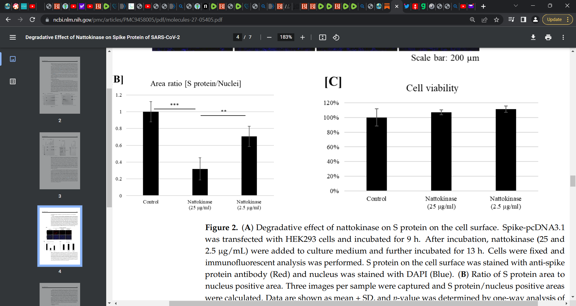 When Tanikawa et al. (study i) above) looked at the degradative Effect of Nattokinase on Spike Protein of SARS-CoV-2, they found that when cell lysates transfected with Spike (S) protein were ‘incubated with nattokinase, the S protein was degraded in a dose- and time-dependent manner’…and ‘S protein on the cell surface was degraded when nattokinase was added to the culture medium.’ One may reasonably extrapolate this to someone who is in receipt of the COVID vaccine. Researchers concluded that ‘nattokinase exhibits potential for the inhibition of SARS-CoV-2 infection via S protein degradation.’