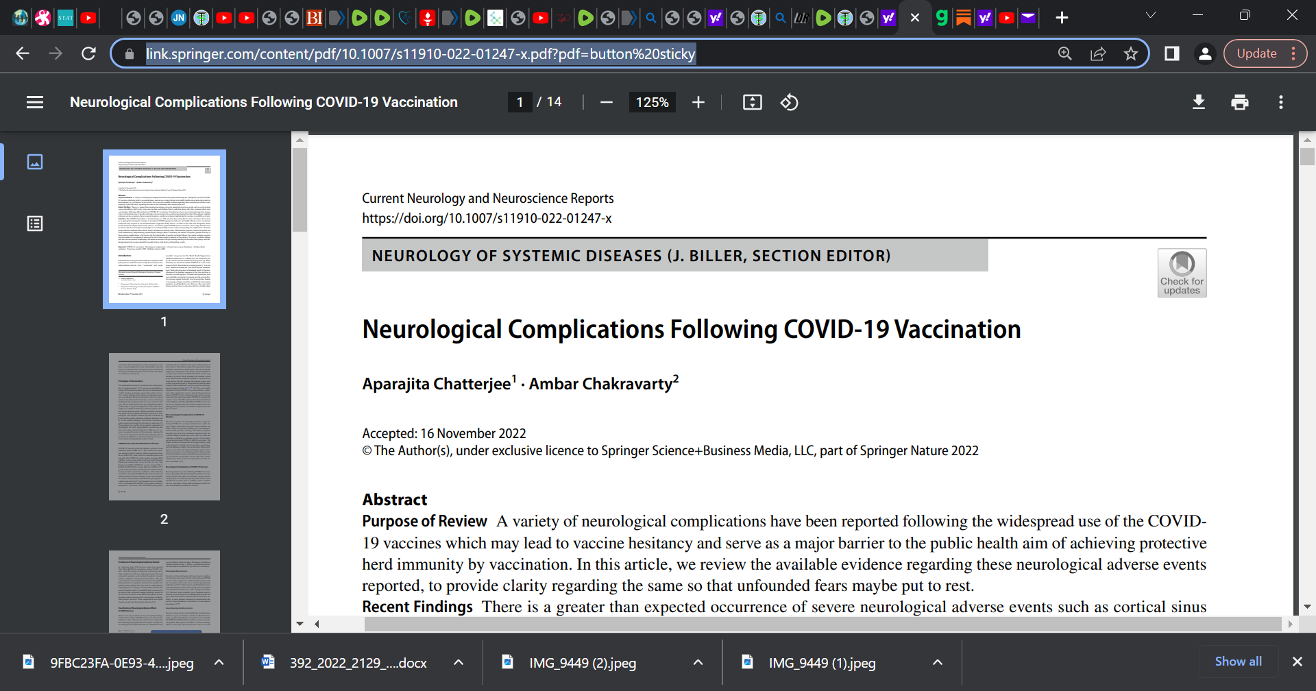 'Neurological Complications Following COVID‑19 Vaccination': Chatterjee & Chakravarty; vaccination against COVID-19 has its hazards that include several potentially serious cardiac and neurological
