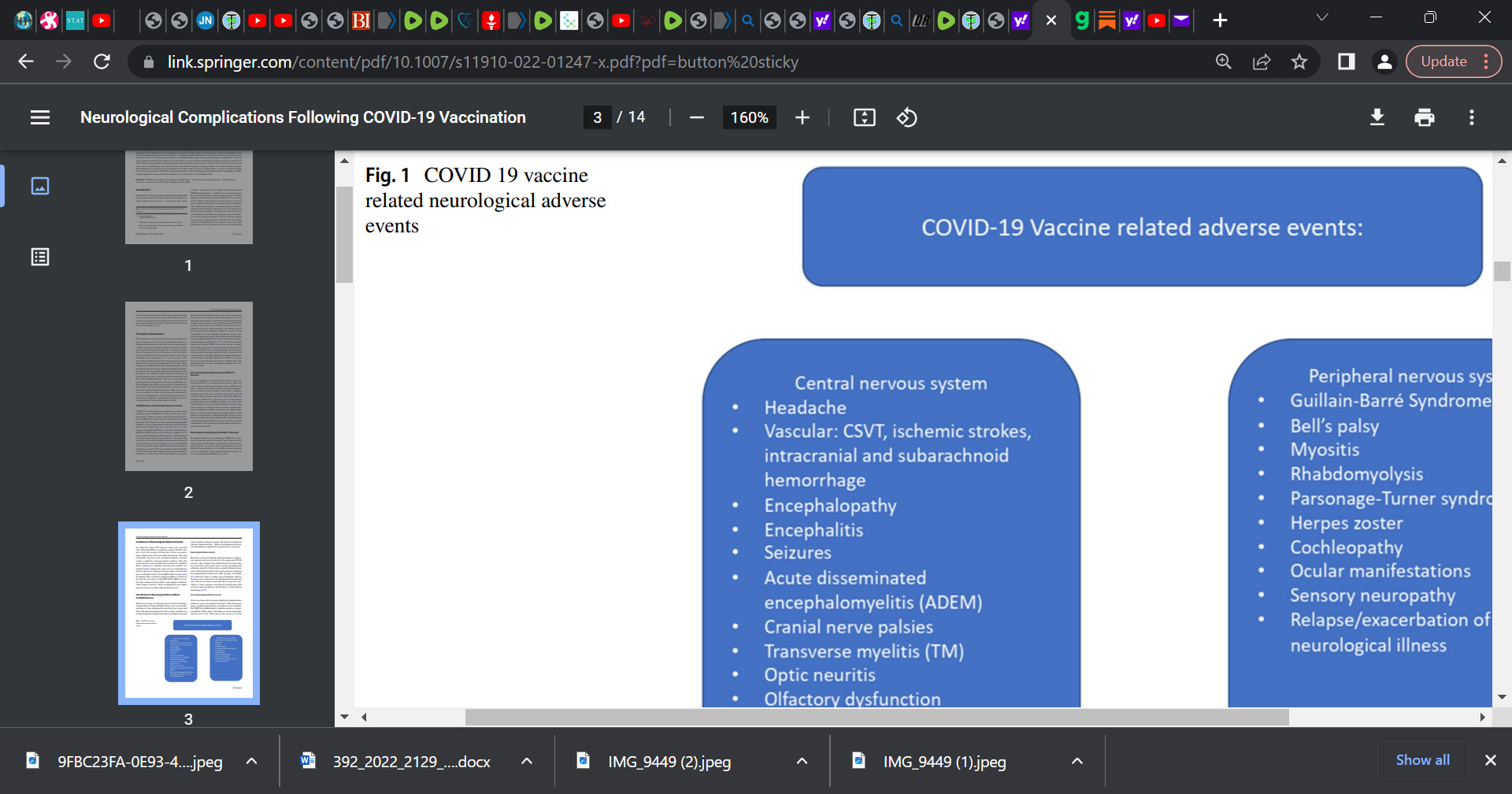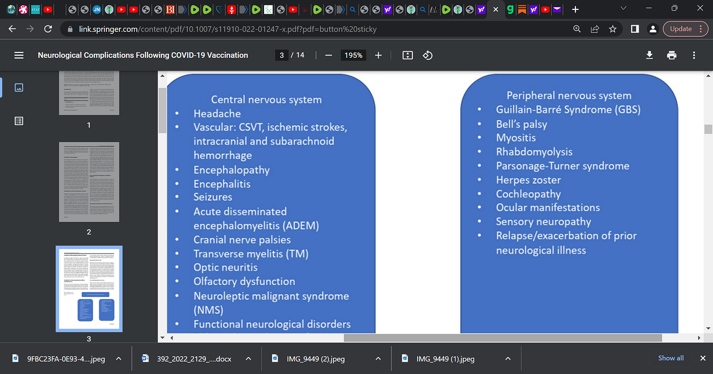 See Figure 1 for a list of COVID 19 vaccine related neurological adverse events. The authors again, in the present woke culture fraught with political correctness etc., is telling you that despite these potentially catastrophic and life-ending side effects, that ‘the current evidence suggests that the benefits of vaccination far outweigh the risk of these events in majority of the patients. As of now, available evidence also does not recommend withholding vaccination in patients with pre-existing neurological disorders like epilepsy and MS, though adenoviral vaccines should be avoided in those with history of thrombotic events.’