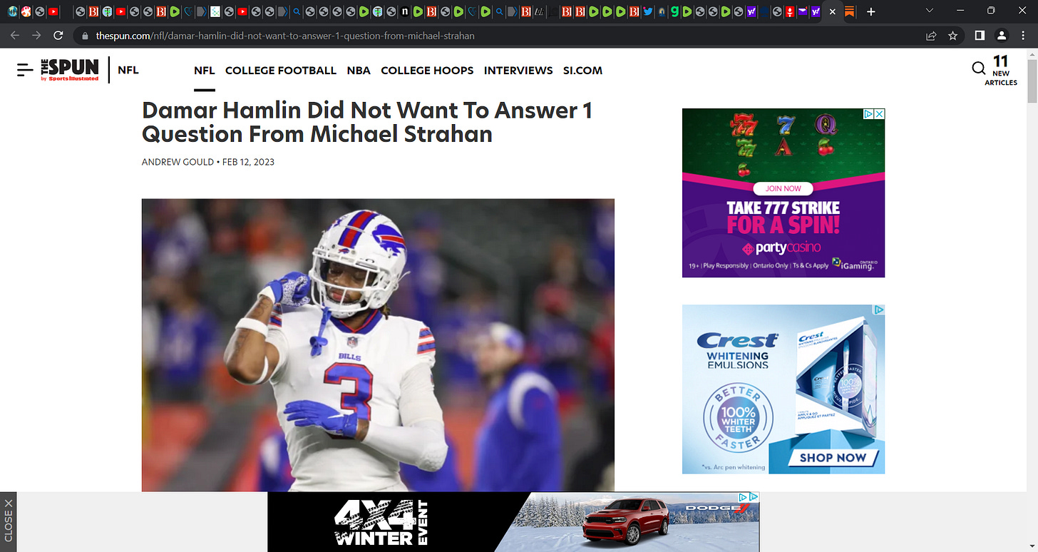 If this was due to the vaccine, then the NFL, all involved, his doctors, himself, are derelict and reckless to the other players who took the shot and boosters. If this was ‘silent’ myocarditis aggravated by catecholamine surging on the field (adrenaline) that caused the cardiac arrest, we must be informed as a public health matter and imperative. He could literally save lives during the off-season.