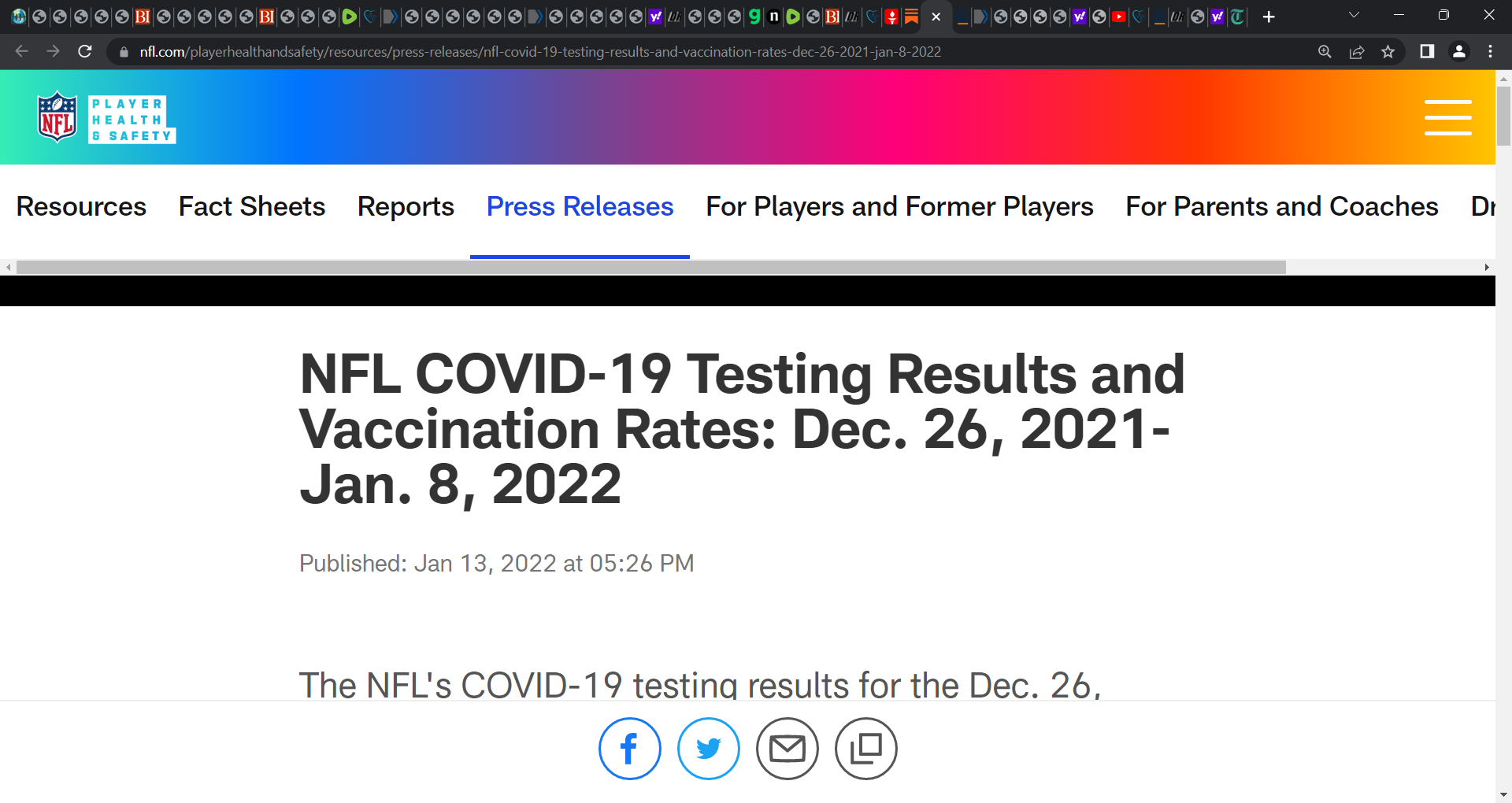 The NFL's COVID-19 vaccination rate as of January 13 is as follows: Nearly 95% of NFL players are vaccinated; nearly 100% of NFL personnel are vaccinated; DO NOT disregard possible myocarditis