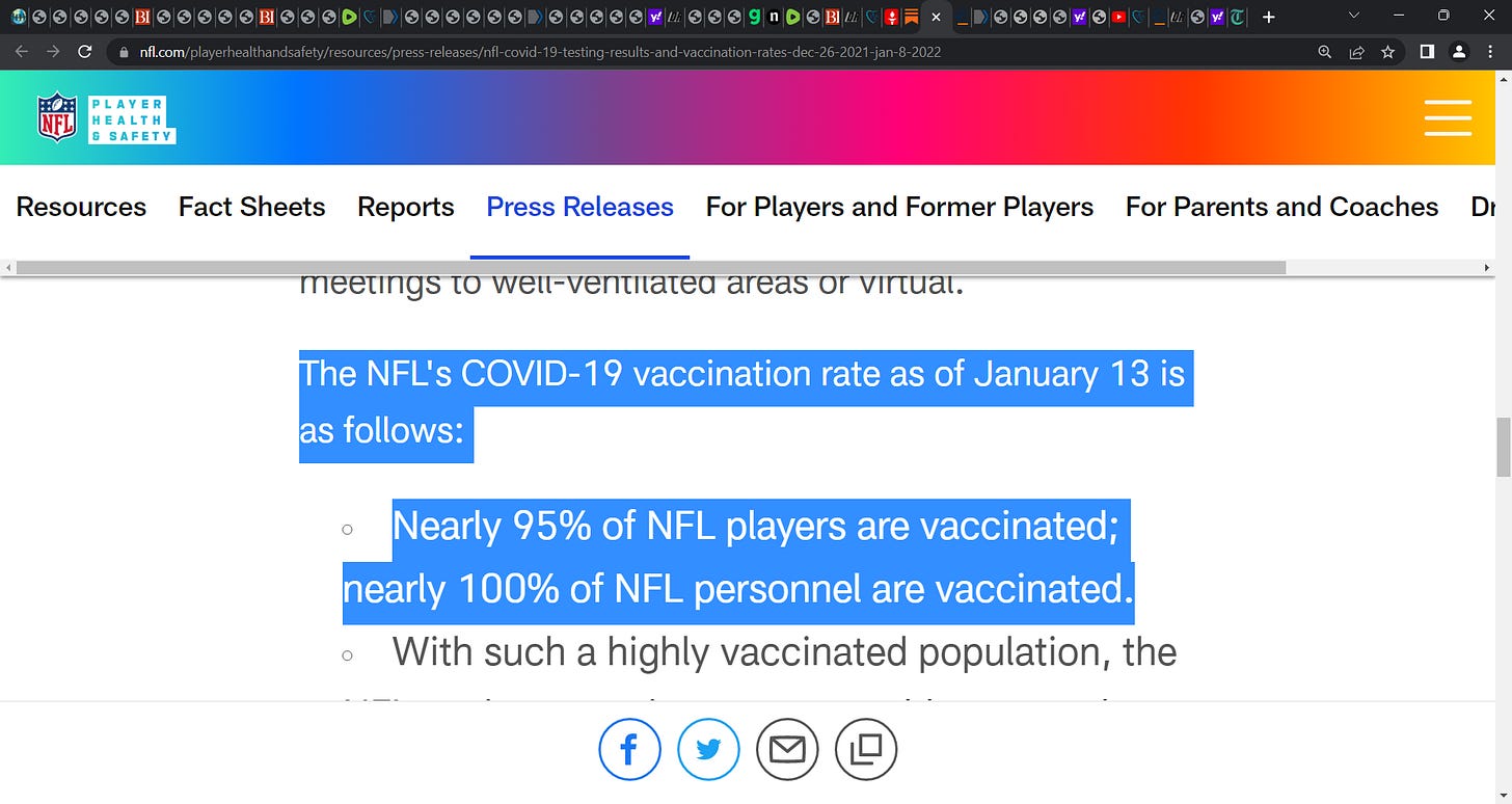 NFL proclaimed that near 100% of players COVID-19 vaccinated one year ago, 95% were vaxxed & thus near 100% today! Given recent developments, NFL 'must' ensure each player is tested for myocarditis
