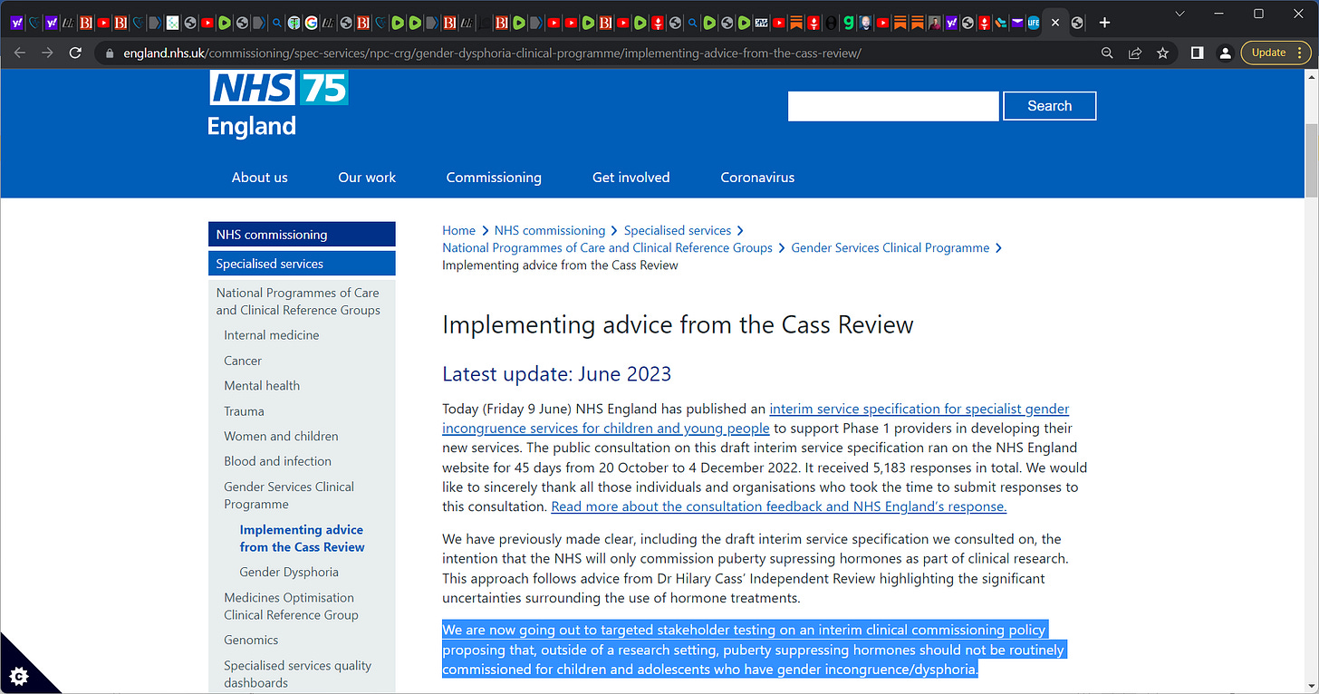 NHS England (UK's) now moves to restrict puberty blockers in children e.g. "outside of a research setting, puberty suppressing hormones should not be routinely commissioned for children & adolescents