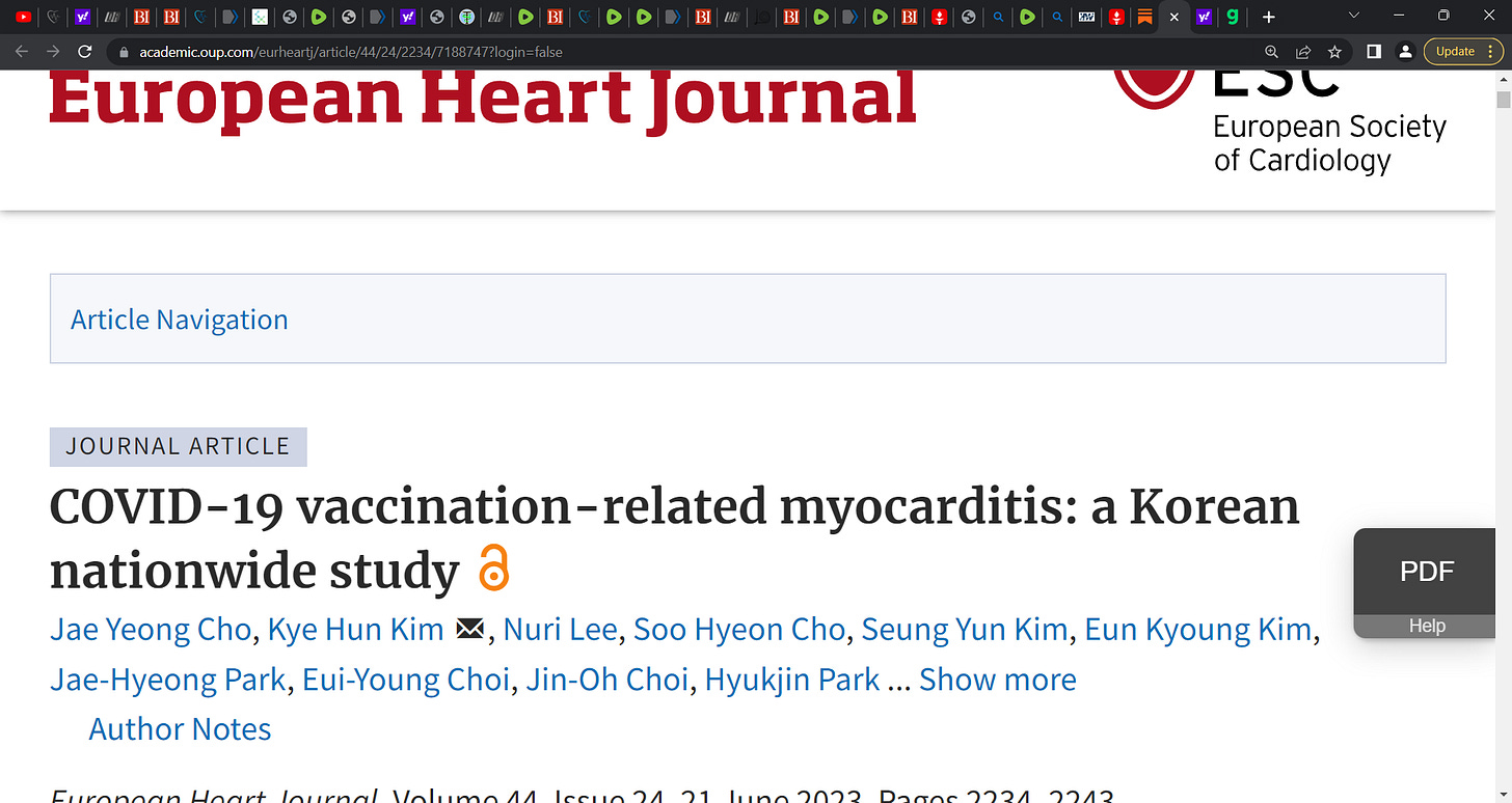 Note in this Cho et al. Korean study: 8 of 21 deaths (38%) were sudden cardiac death (SCD) attributable to vaccine related mortality (VRM) proved by an autopsy, and all cases of SCD