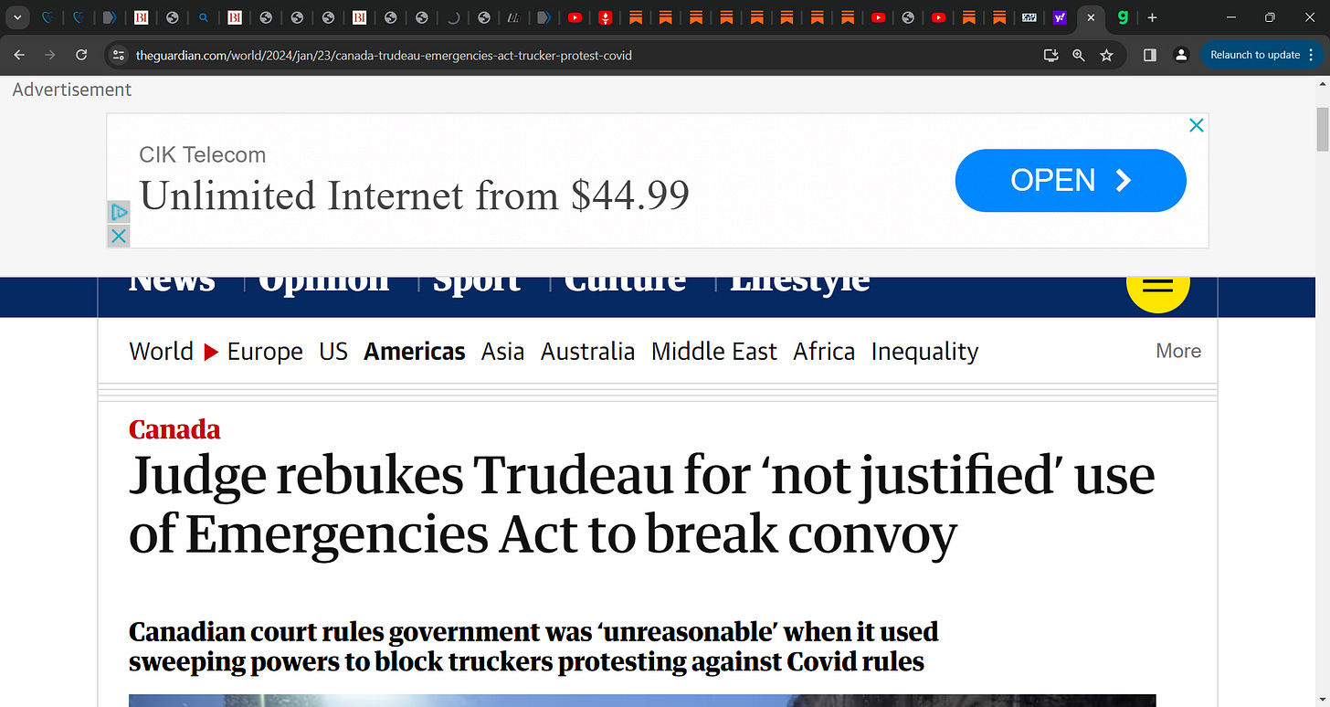 https://danielnagase.substack.com/p/to-cheer-or-not-to-cheer There's more to this ruling than meets the eye. If you read it carefully, it looks like 1) instructions to the Trudeau government to use the criminal code instead of the EA. 2) A claim by the courts that unelected Judges decide what constitutes an emergency