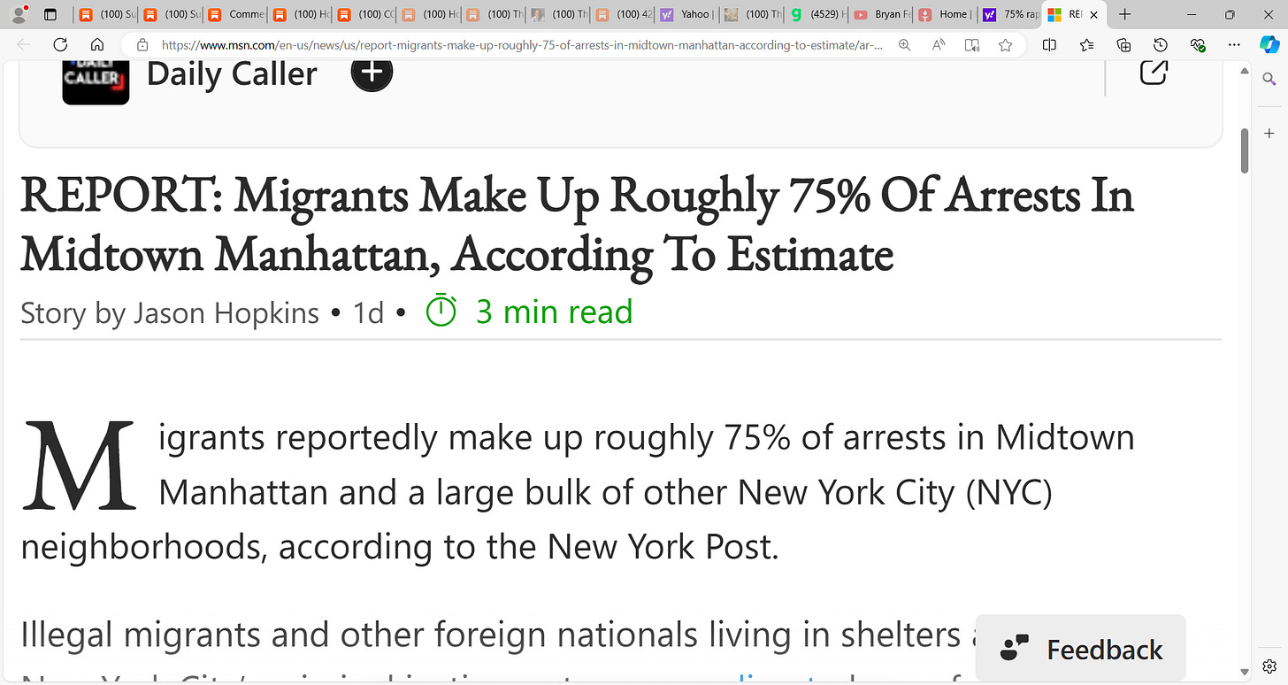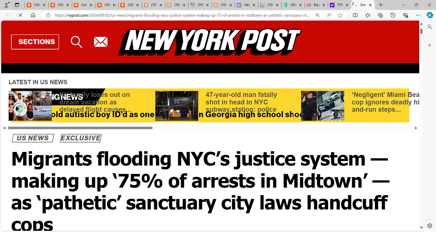 ‘Migrants reportedly make up roughly 75% of arrests in Midtown Manhattan and a large bulk of other New York City (NYC) neighborhoods, according to the New York Post.’