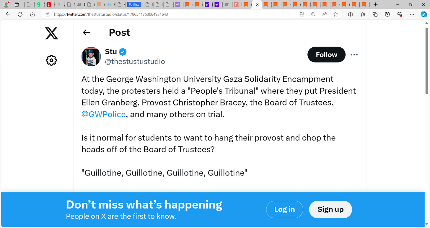 Pro-Hamas student protesters at George Washington University are now openly calling for the beheading of the school president and members of the board of trustees.