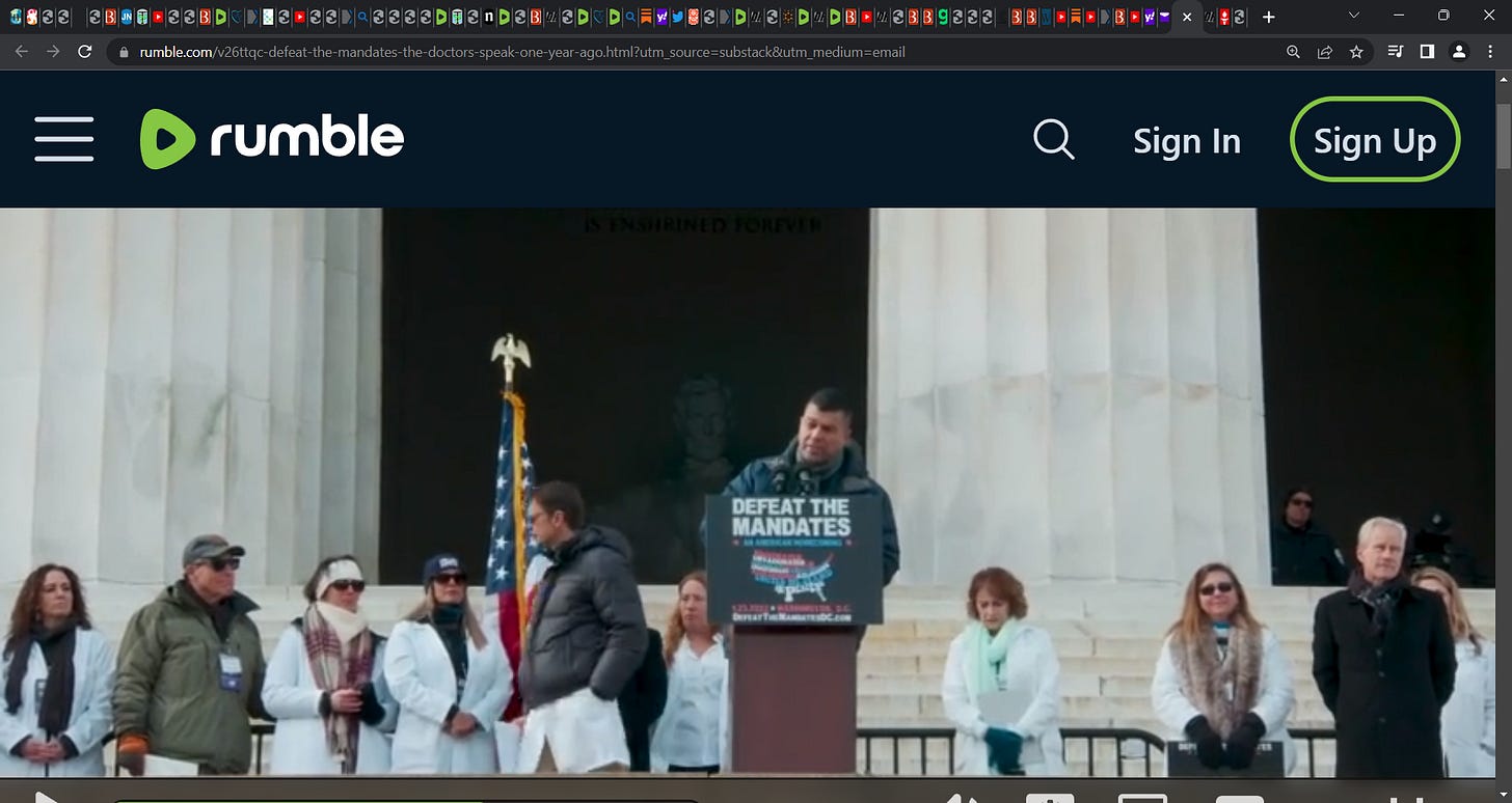 The day of the Defeat the Mandates rally in D.C. was a turning point for me in the midst of what seemed like the end of the world. It gave me courage. I was never going to let anyone give me an mRNA shot and was frightened of the legal and medical consequences. (I'd already had a severe case of covid in mid-February 2020, so did not fear covid.) I stopped being afraid of doctors and the government because I knew I could say that you and the other speakers supported my position. I cannot emphasize enough how much that knowledge changed my life and the lives of my family and friends who look to me for guidance and support.