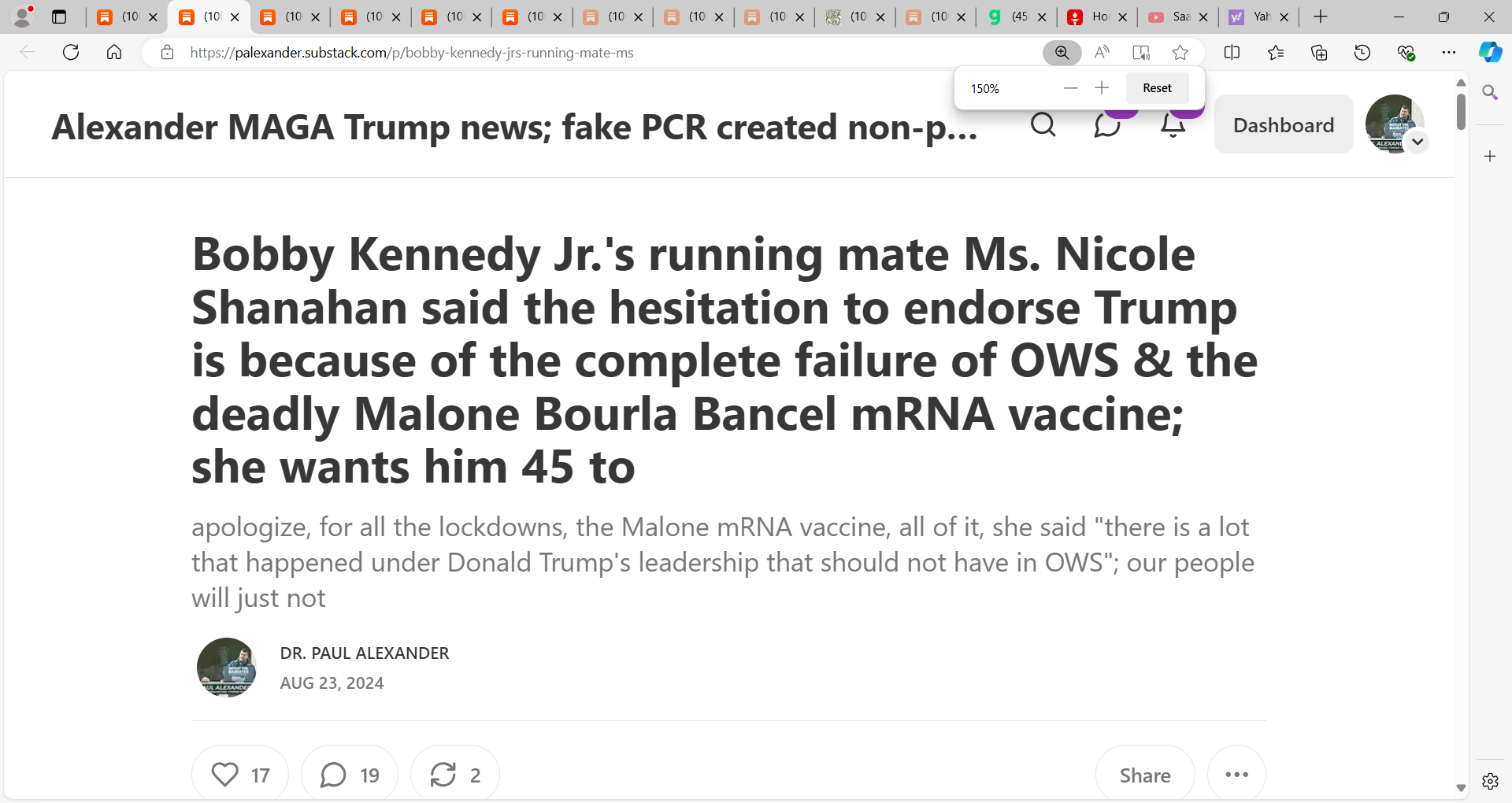 One more thing, Ms. Nicole Shanahan (Bobby Kennedy Jr.'s VP running mate) spoke out against Operation Warp Speed (OWS), the deadly lockdowns, the deadly Malon Boural Bancel mRNA vaccine & urged Trump