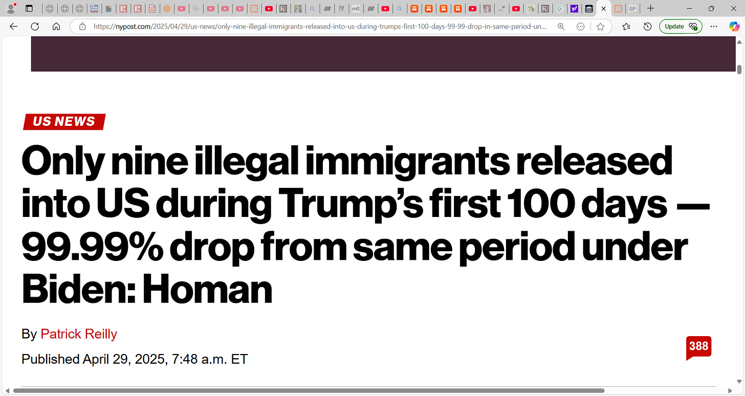 Only nine illegal immigrants released into US during Trump’s first 100 days — 99.99% drop from same period under Biden: Homan; Just nine illegal migrants were released into the US during President