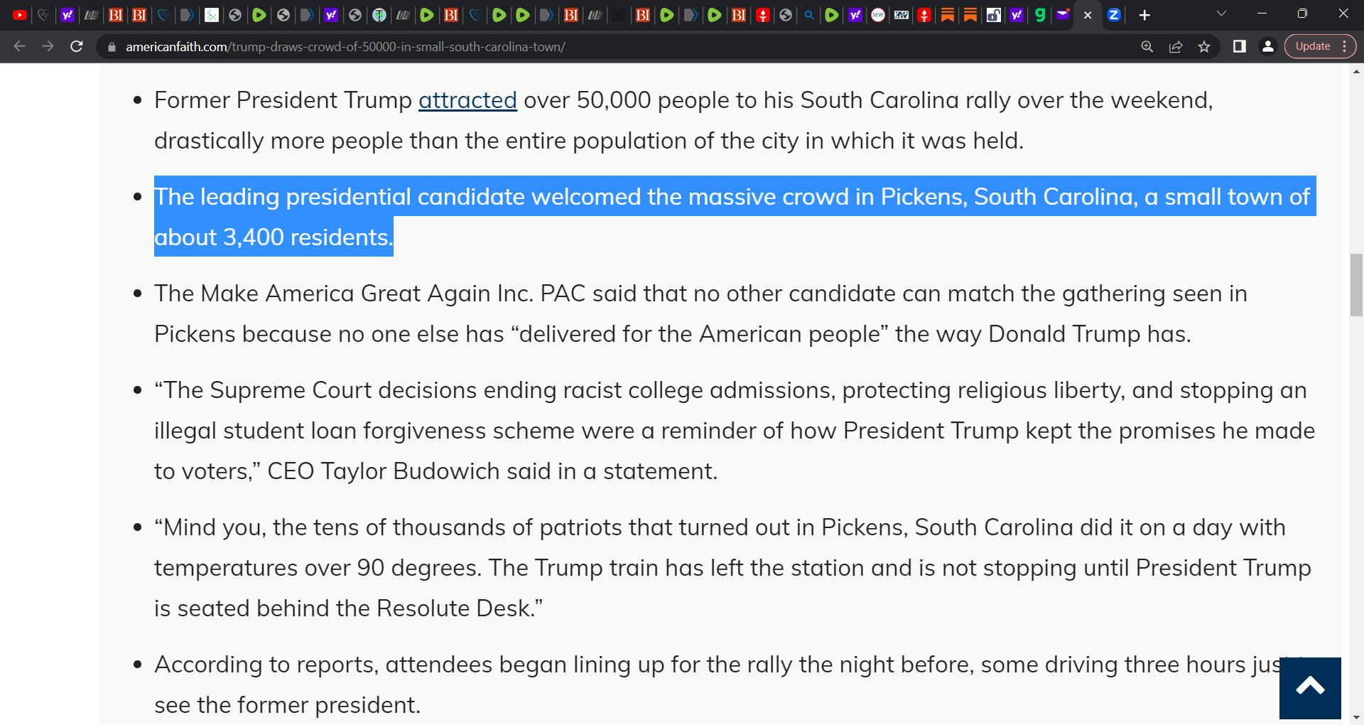 Trump Draws Crowd of 50,000 in Small South Carolina Town; The leading presidential candidate welcomed the massive crowd in Pickens, South Carolina, a small town of about 3,400 residents.