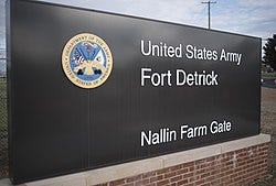 ‘Fort Detrick (/ˈdiːtrɪk/) is a United States Army Futures Command installation located in Frederick, Maryland. Fort Detrick was the center of the U.S. biological weapons program from 1943 to 1969. Since the discontinuation of that program, it has hosted most elements of the United States biological defense program.[1]